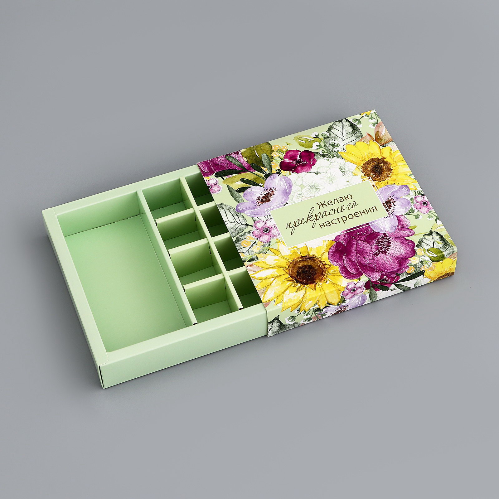Коробка для 8 конфет + шоколад, с окном "Прекрасного настроения", 17.7x17.8x3.8 см, 17.8x17.7x3.8 см., UPAK LAND, Китай