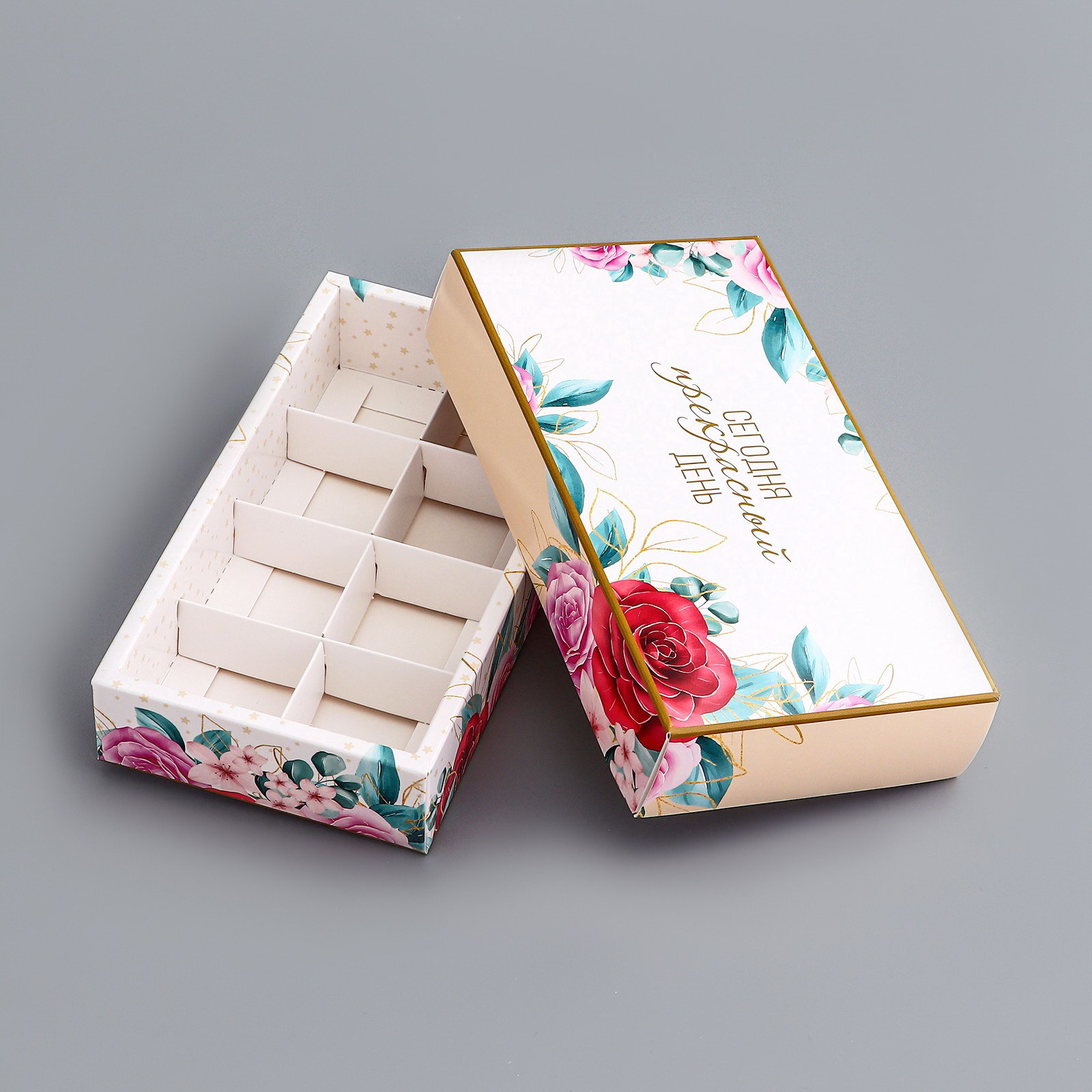 Коробка складная для 8 конфет без окна "Прекрасного настроения", 9.8x17.7x3.5 см, 17.7x9.8x3.5 см., UPAK LAND, Китай
