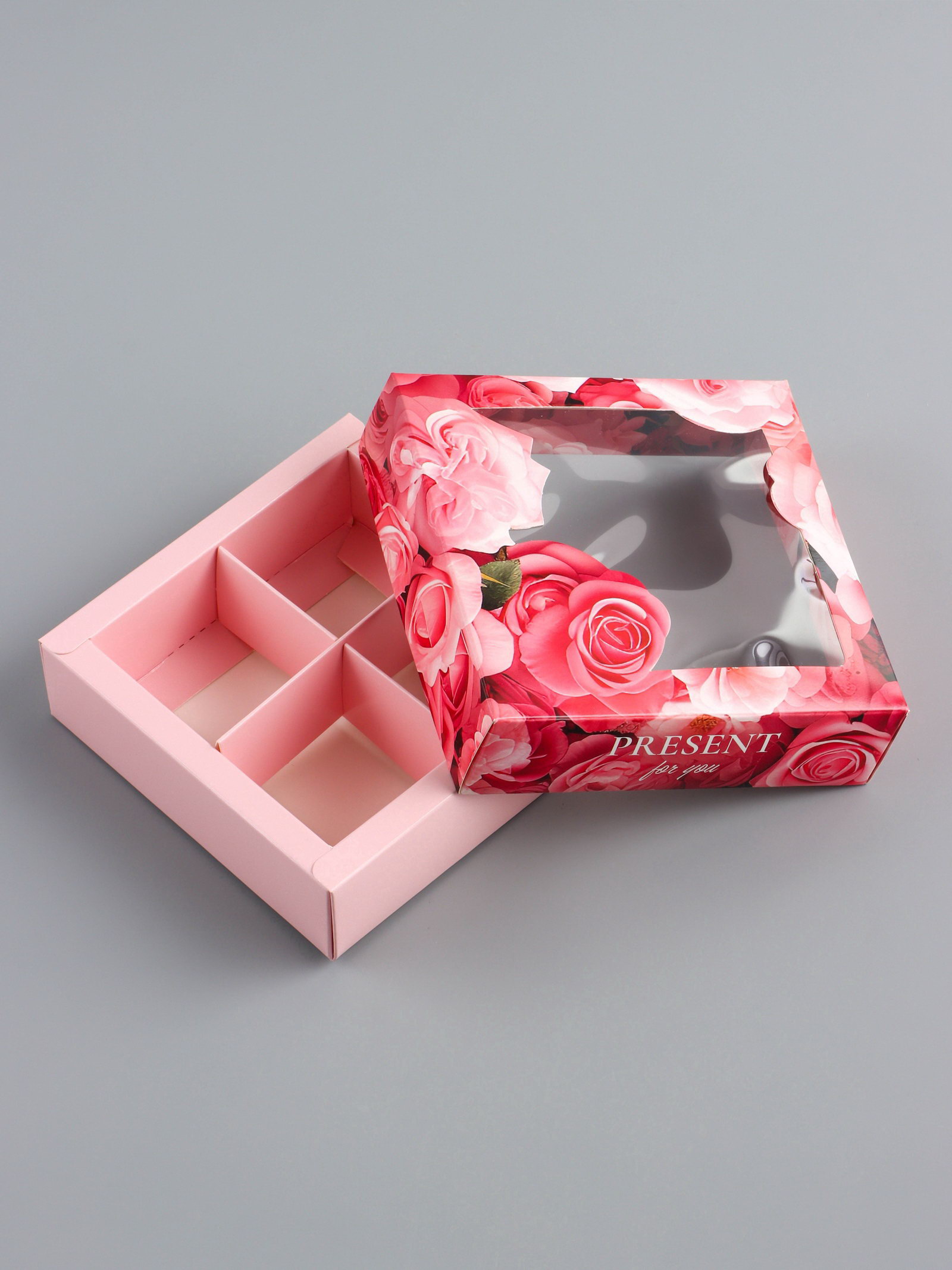 Коробка для конфет 4 шт. "Презент", 12.6x12.6x3.5 см, 12.6x12.6x3.5 см., UPAK LAND, Китай