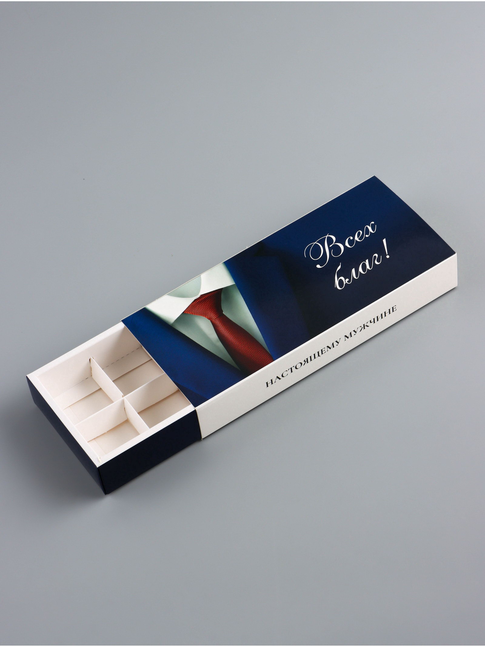 Коробка складная для 10 конфет без окна "Настоящему мужчине", 9.8x22x3.5 см, 22x9.8x3.5 см., UPAK LAND, Китай