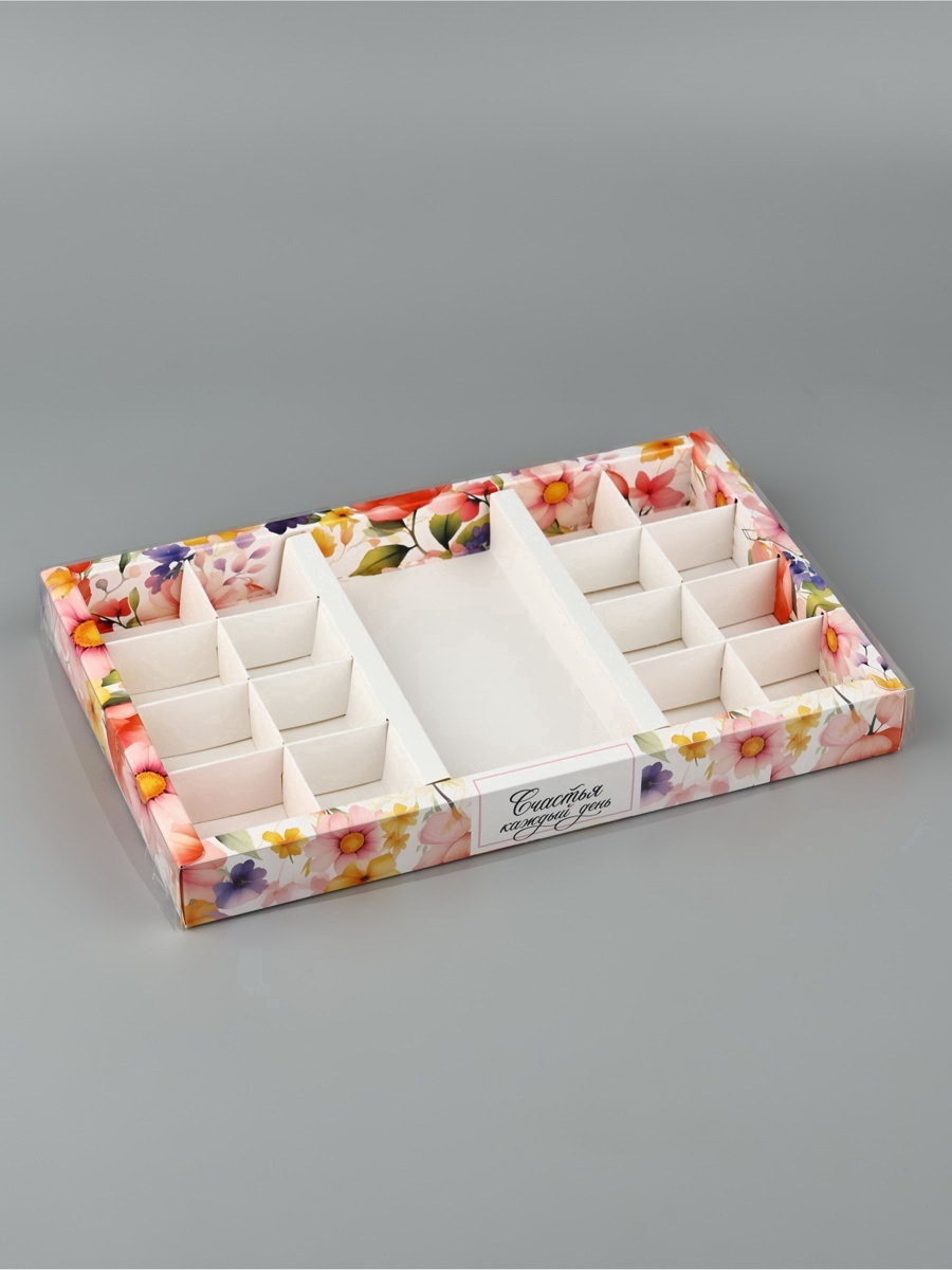 Коробка под 16 конфет и шоколад, кондитерская упаковка "Счастья" 28.5 x 18.5 x 3 см, 18.6x28.8x3 см., Дарите Счастье, Китай