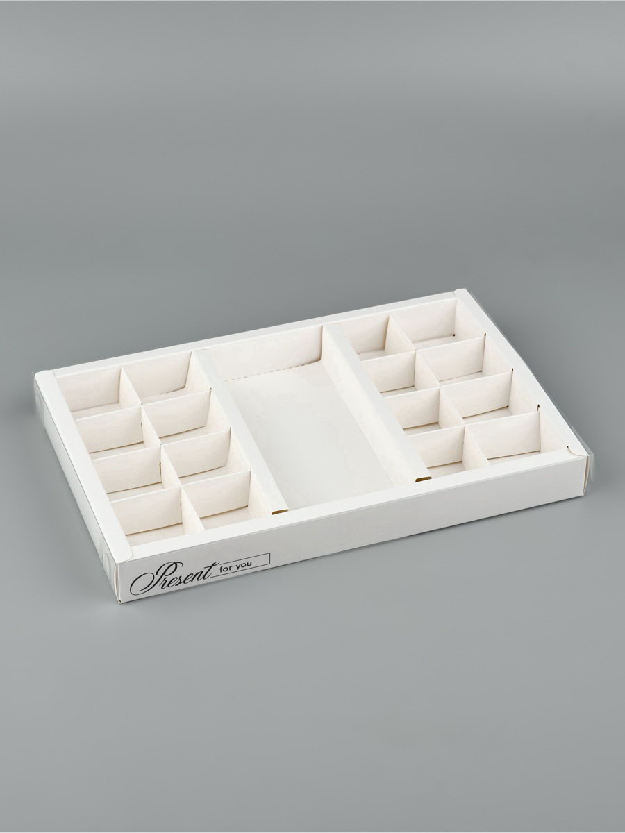 Размер упаковки: 35 x 46 x 0.3 см. Тематика: Однотонная Длина, см: 28.5 Цвет: Белый Плотность, г/?2: 250 Форма: Прямоугольная Высота, см: 3 Тематика праздника: Универсальная тематика Вид: Складные коробки Количество ячеек: 16 Ширина, см: 18.5 tnved: 4819200000 tnved: 4819200000 Вид упаковки: Для конфет | ||