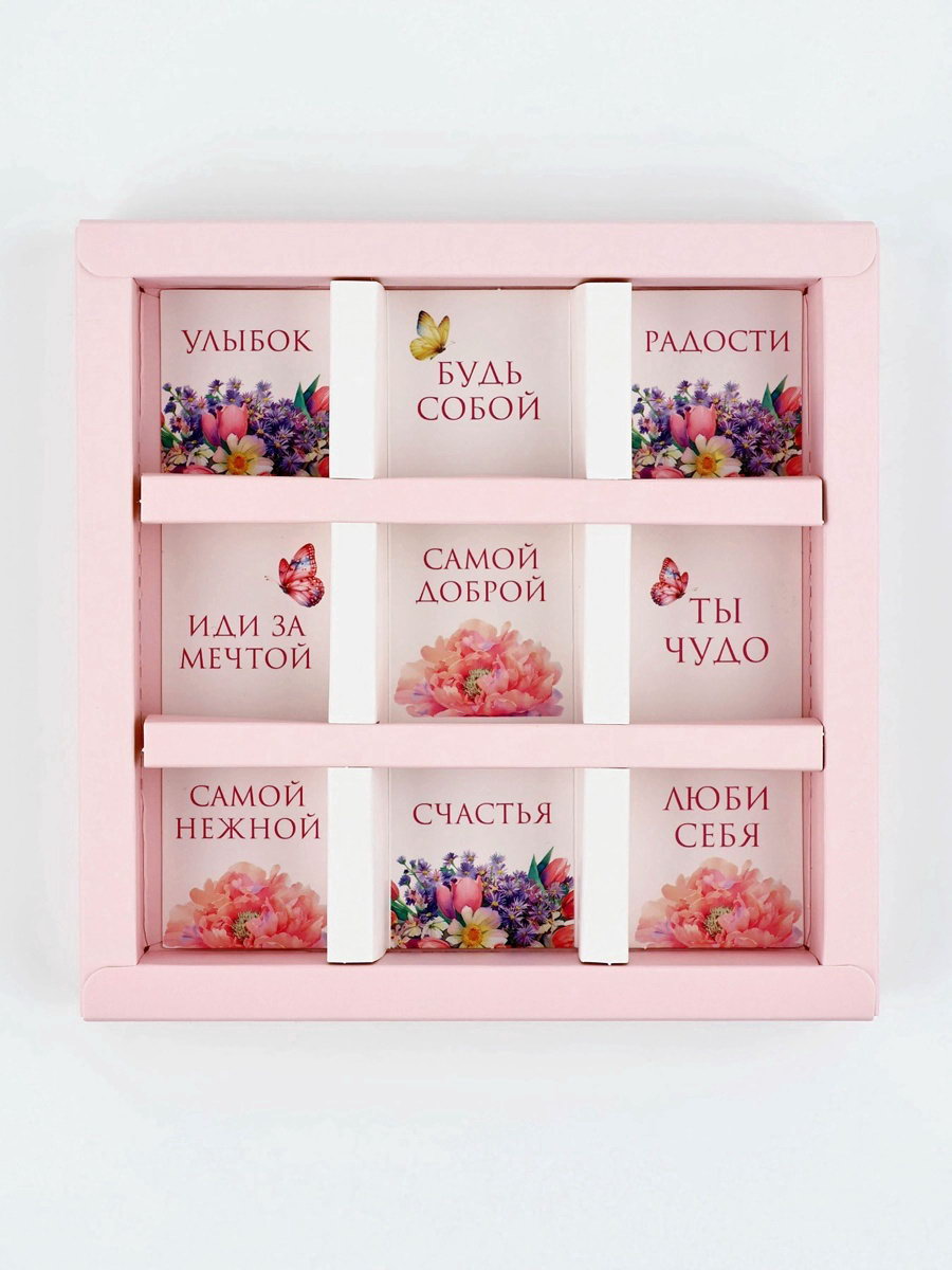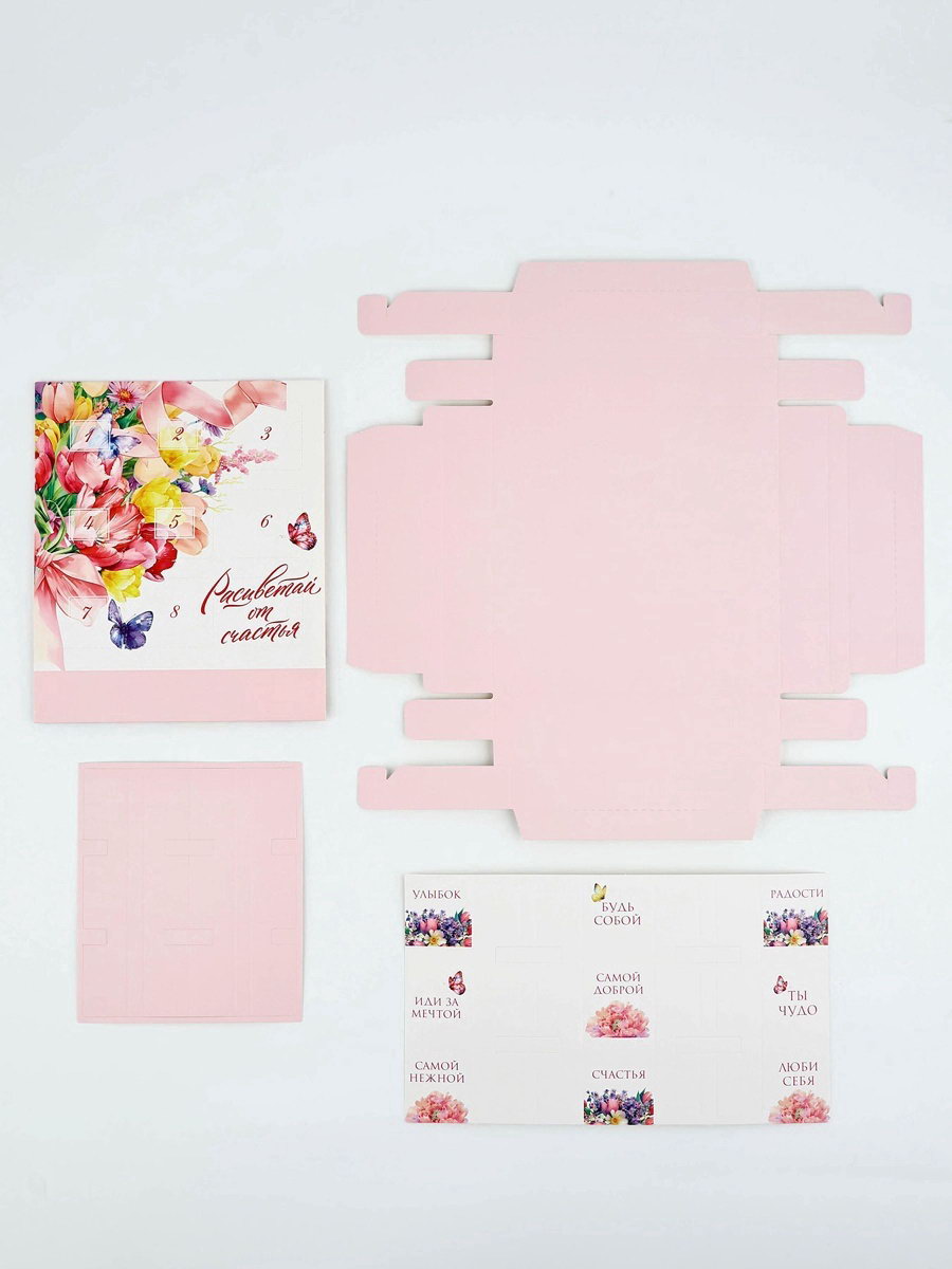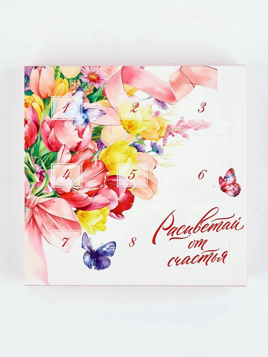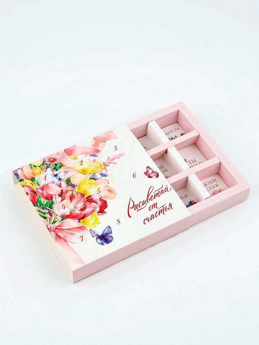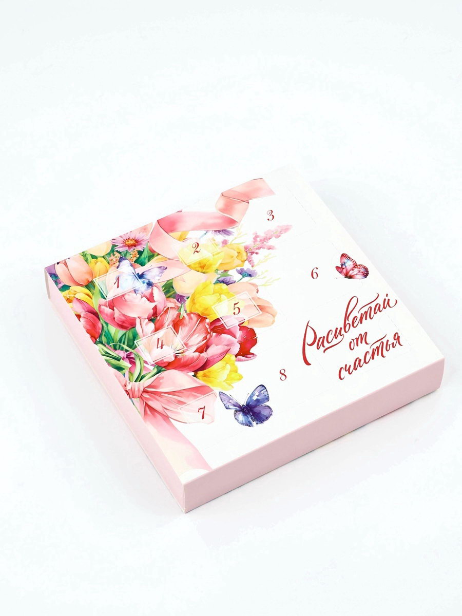 Коробка-адвент под 9 конфет, "Расцветай", 14.5 x 14.5 x 2.5 см, кондитерская упаковка, 14.5x14.5x2.5 см., Дарите Счастье, Китай