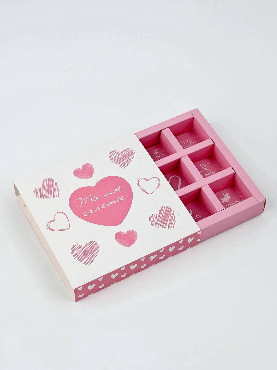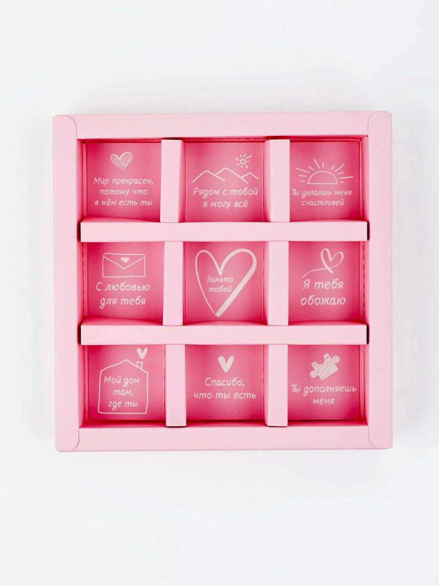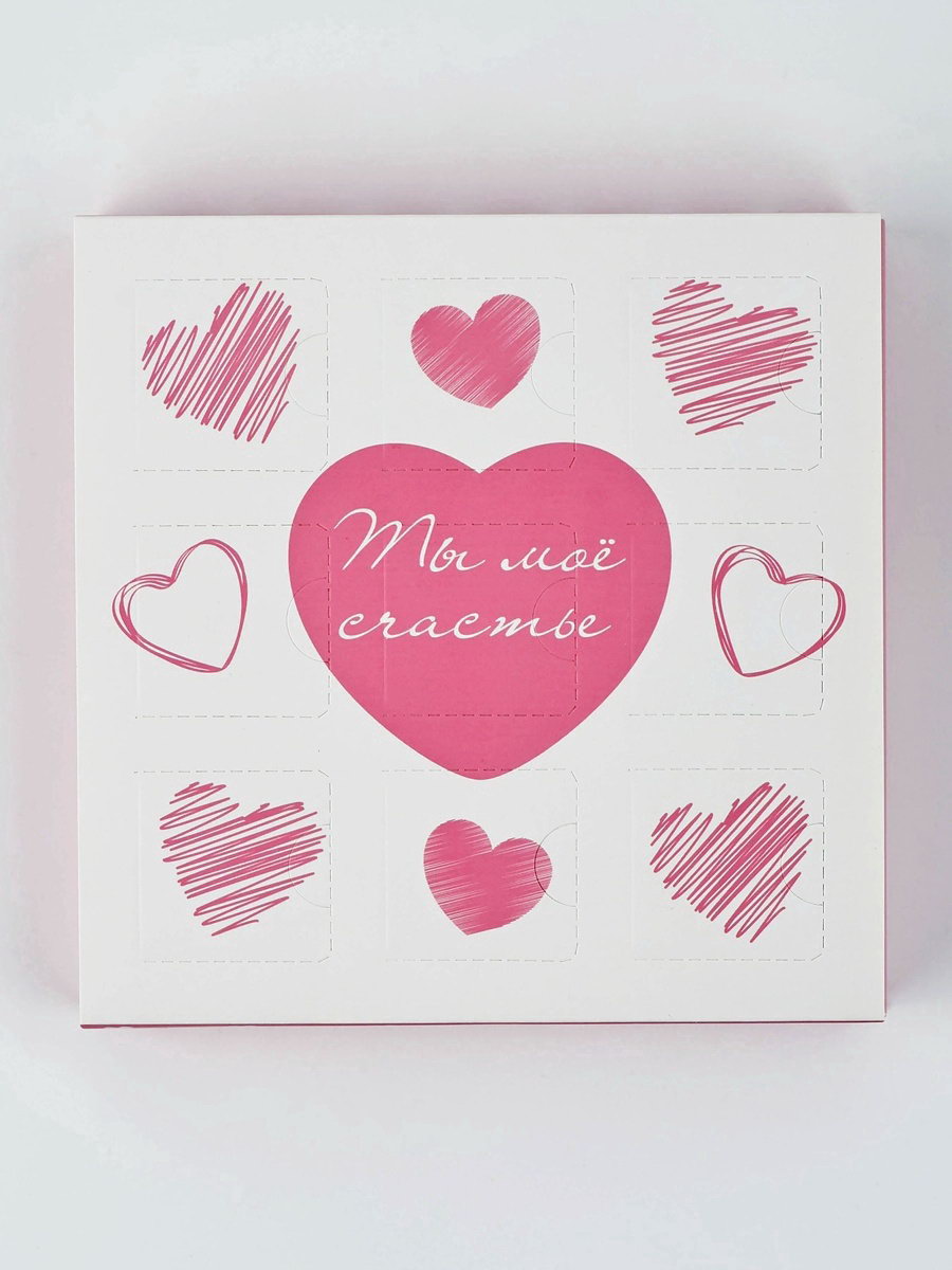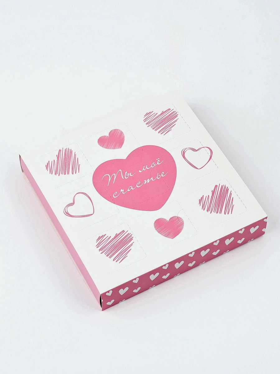 Коробка-адвент под 9 конфет, "Сердца", 14.5 x 14.5 x 2.5 см, кондитерская упаковка, 14.5x14.5x2.5 см., Дарите Счастье, Китай