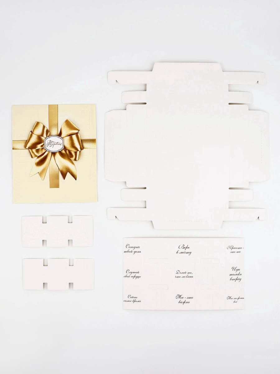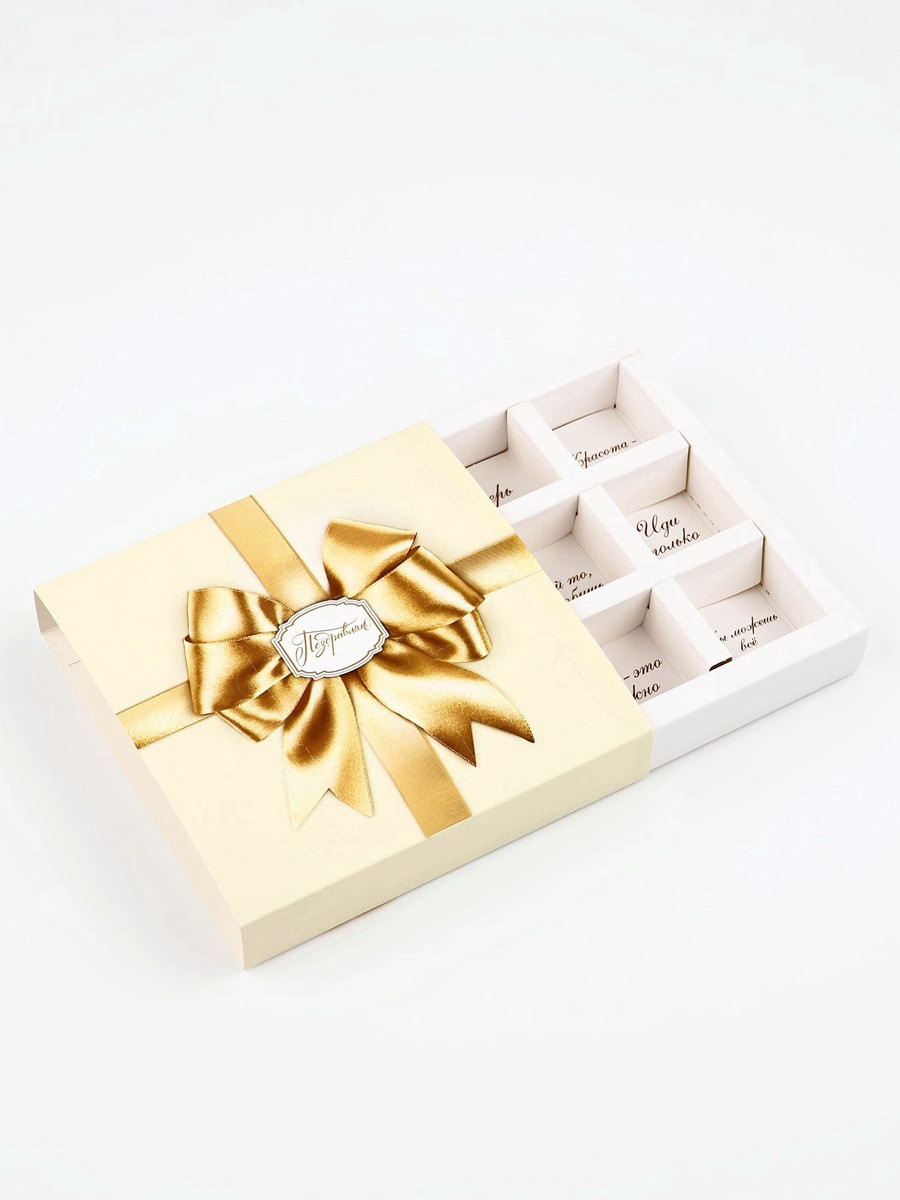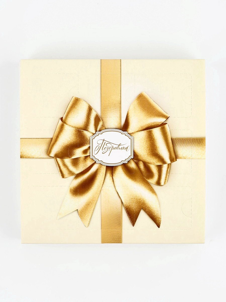 Коробка-адвент под 9 конфет, "Золотой бант", 14.5 x 14.5 x 2.5 см, кондитерская упаковка, 14.5x14.5x2.5 см., Дарите Счастье, Китай