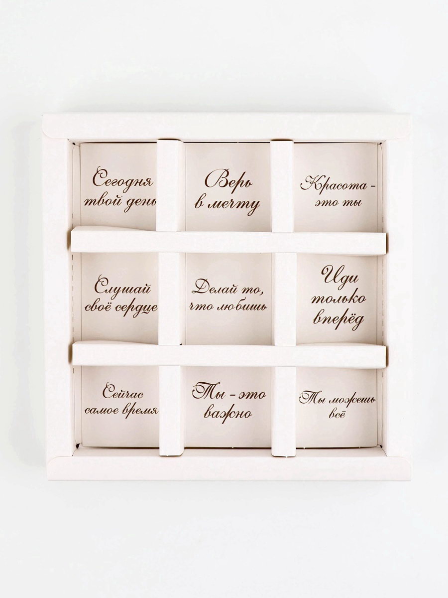 Вид: Интерактивные, Складные коробки Размер упаковки: 32 x 33 x 0.1 см. Тематика: Банты Форма: Квадратная Высота, см: 2.5 Ширина, см: 14.5 Длина, см: 14.5 Плотность, г/?2: 250 Цвет: Бежевый Количество ячеек: 9 Тематика праздника: Универсальная тематика Тематика праздника: Универсальная тематика tnved: 4819200000 Вид упаковки: Для конфет | ||
