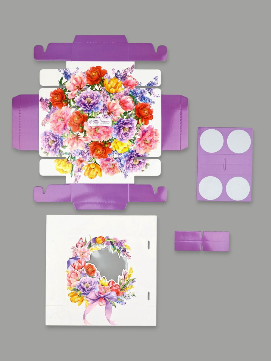 Коробка под 4 конфеты со скретч-слоем "Букет", 10.5 x 10.5 x 3.5 см, 10.5x10.5x3.5 см., Дарите Счастье, Китай