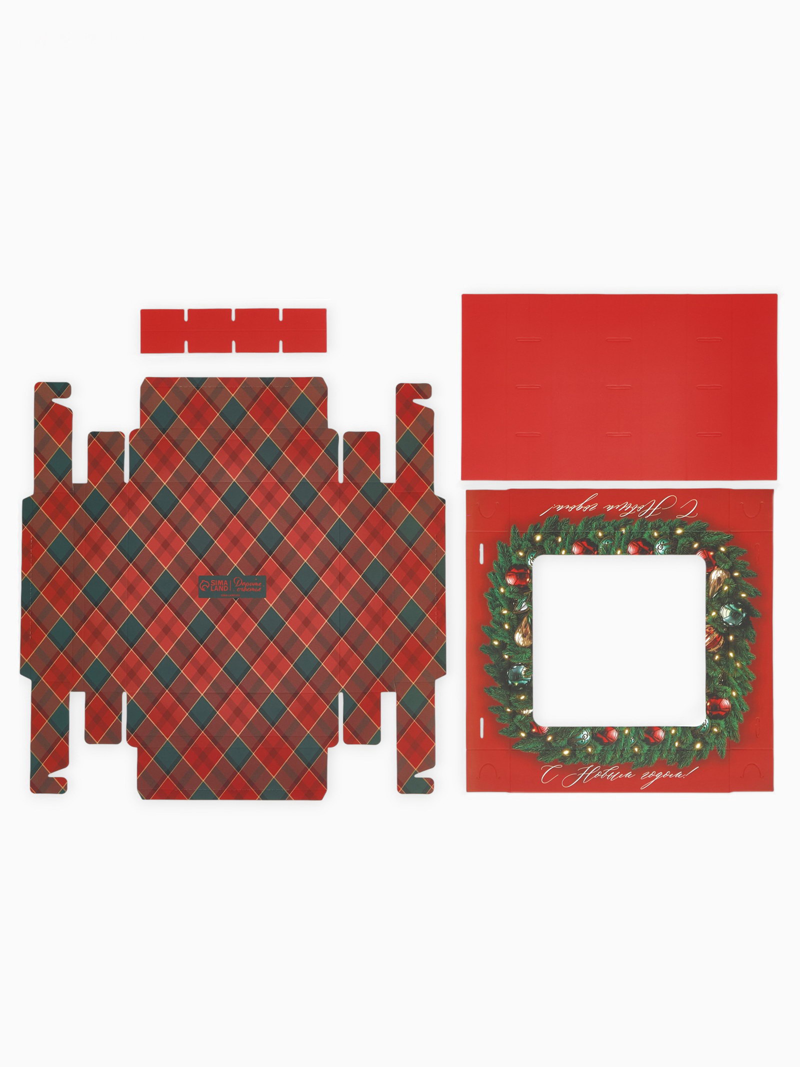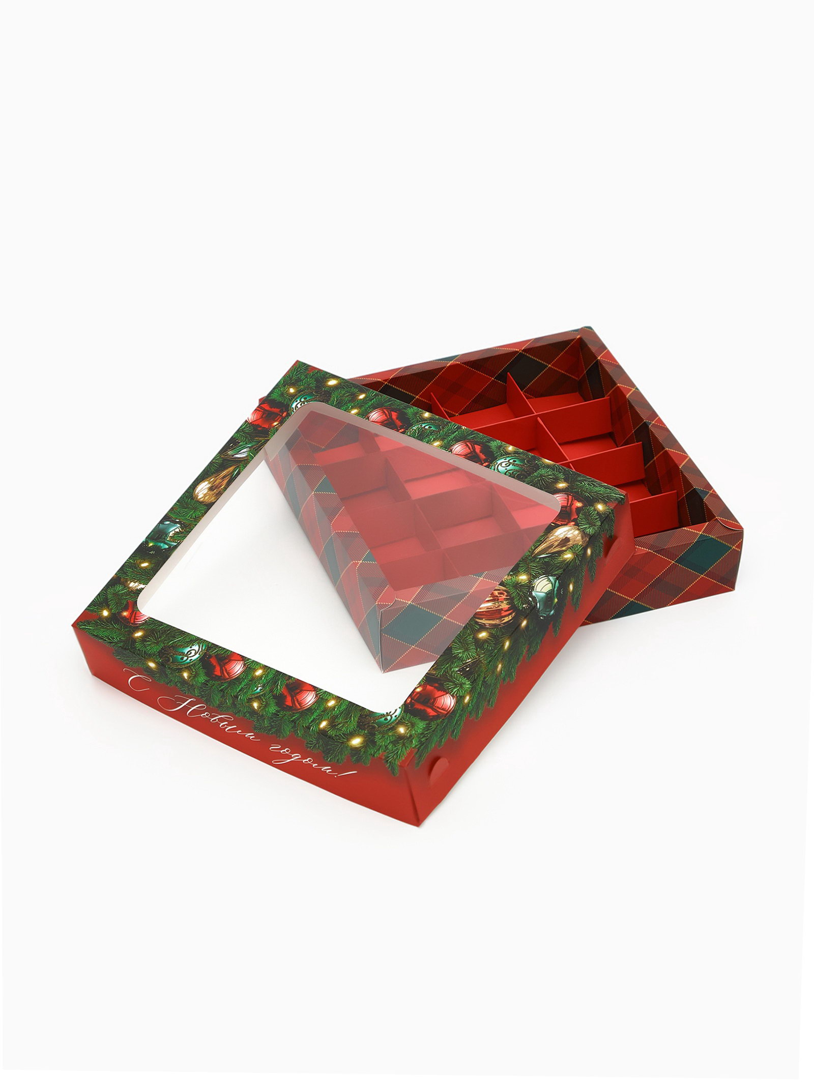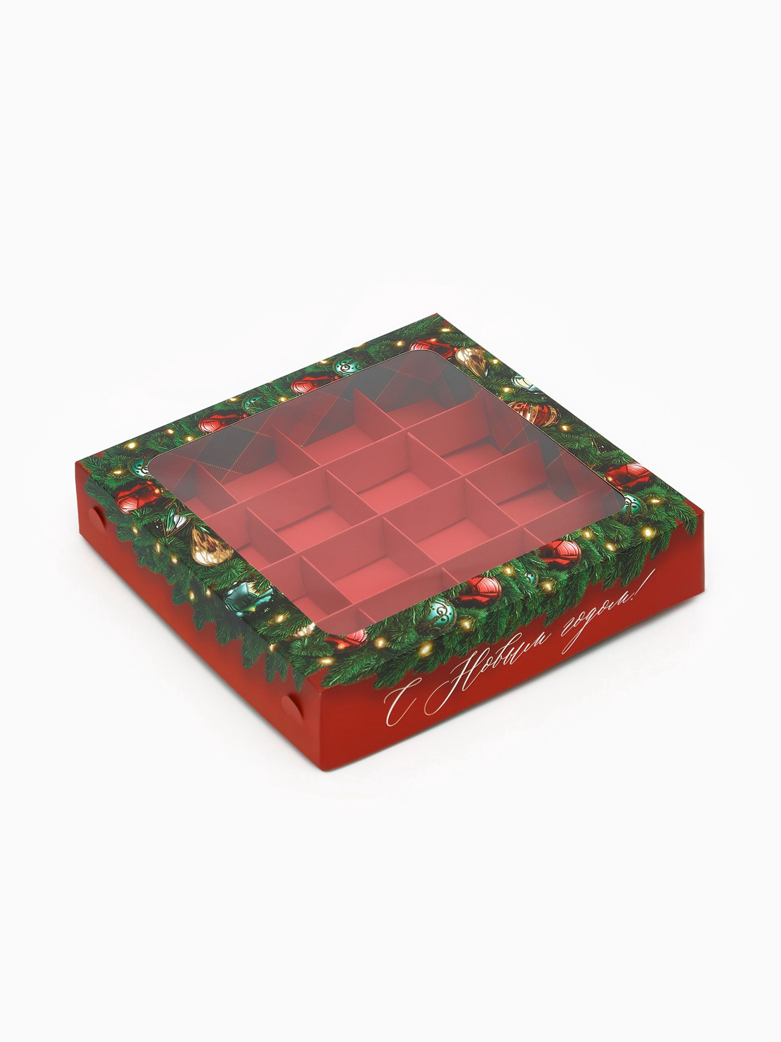 Коробка для конфет "Еловые веточки", 18.9x18.9x3.8 см, 18.9x18.9x3.8 см., Дарите Счастье, Китай