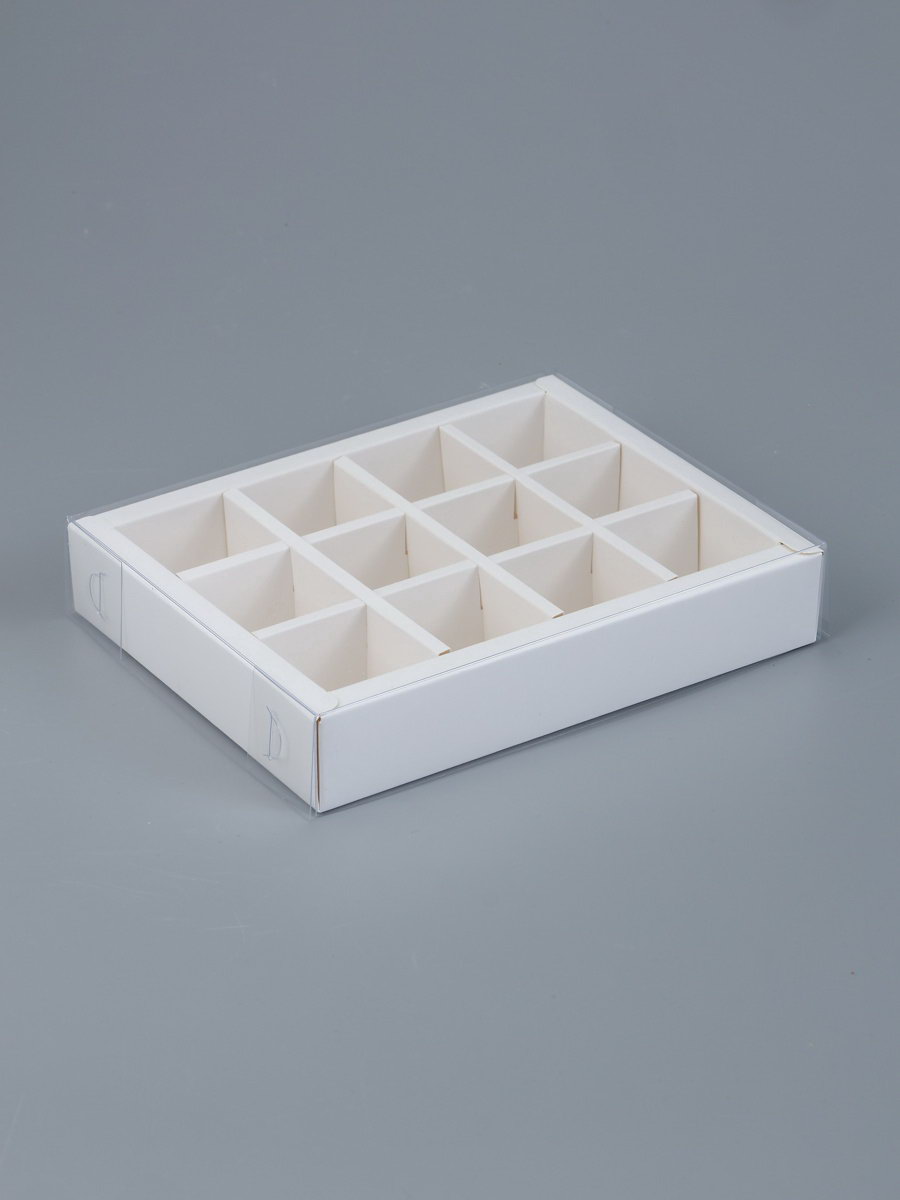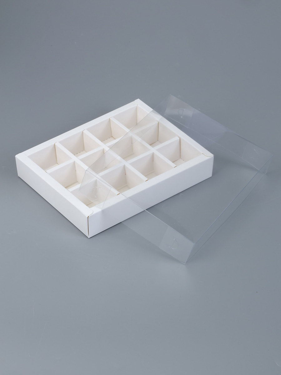 Коробка для 12 конфет, белая, с прозрачной ПВХ крышкой, 19x15x3.5 см, 15x19x3.5 см., UPAK LAND, Китай