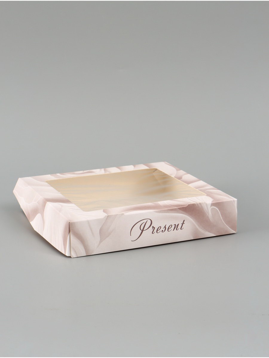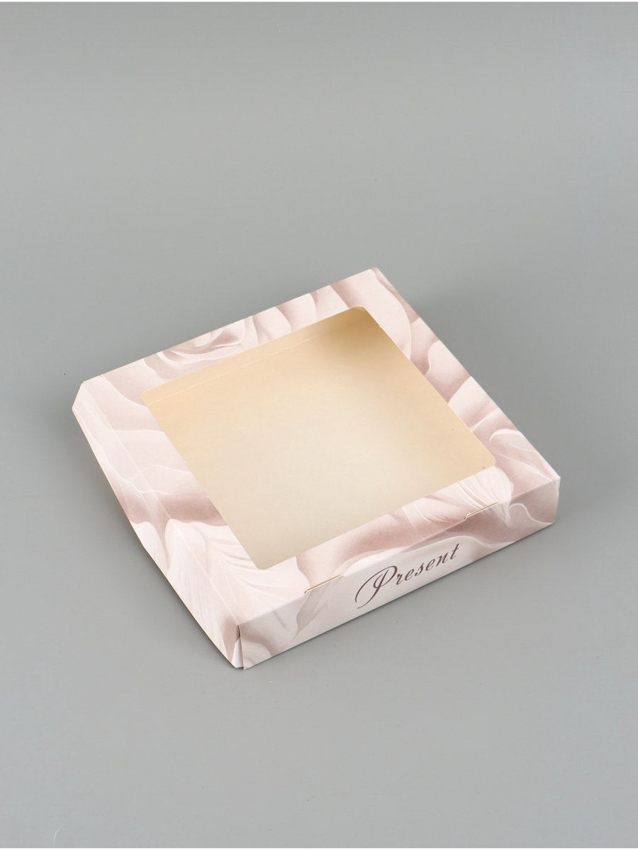 Коробка подарочная складная "Подарок", 20x20x4 см, с окном, Дарите Счастье, Россия
