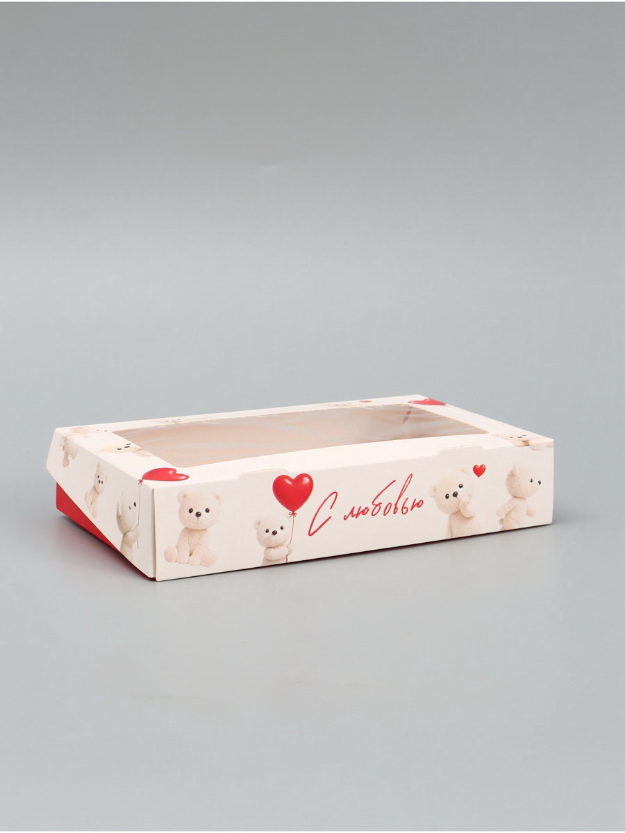 Коробка подарочная складная "С любовью", 20x12x4 см, с окном, Дарите Счастье, Россия