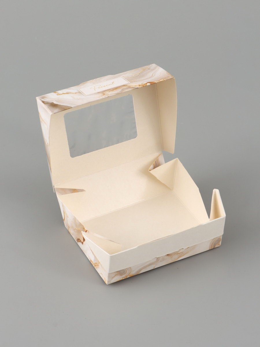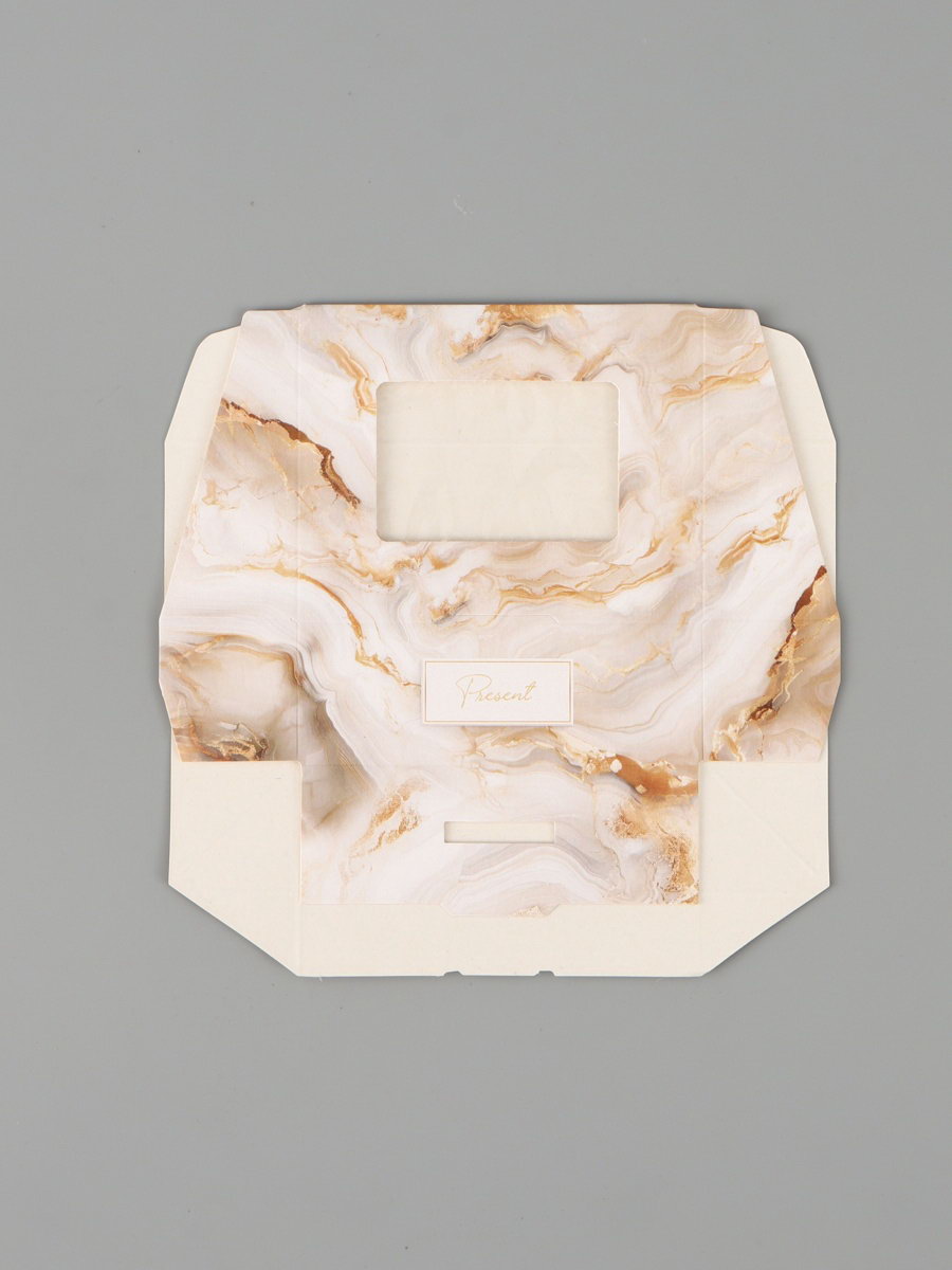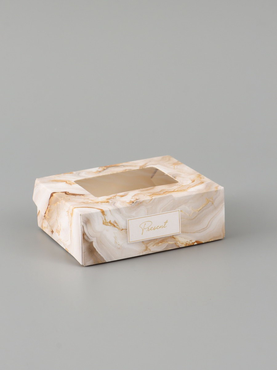 Коробка подарочная с окном "Мрамор", 10x8x3.5 см, самосборная, Дарите Счастье, Россия