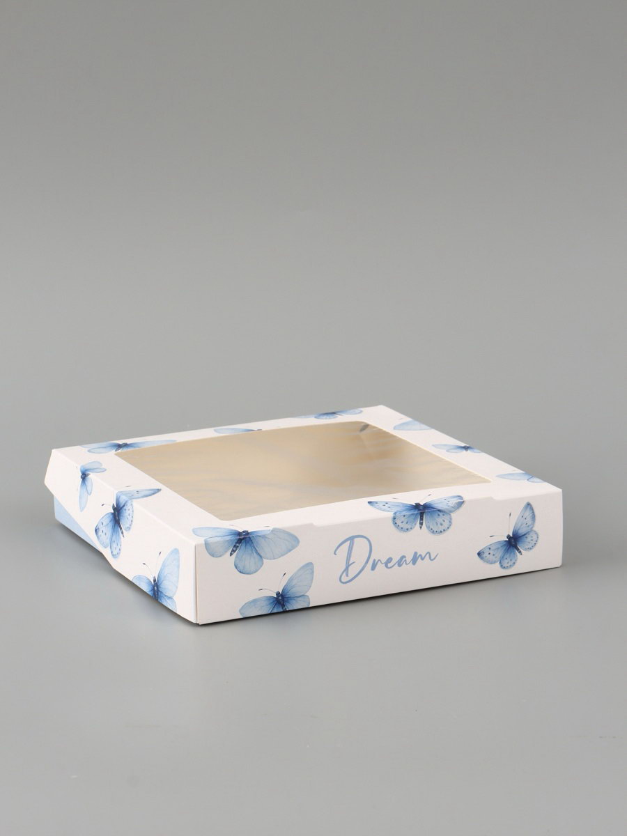 Коробка подарочная с окном "Мечты", 20x20x4 см, самосборная, Дарите Счастье, Россия