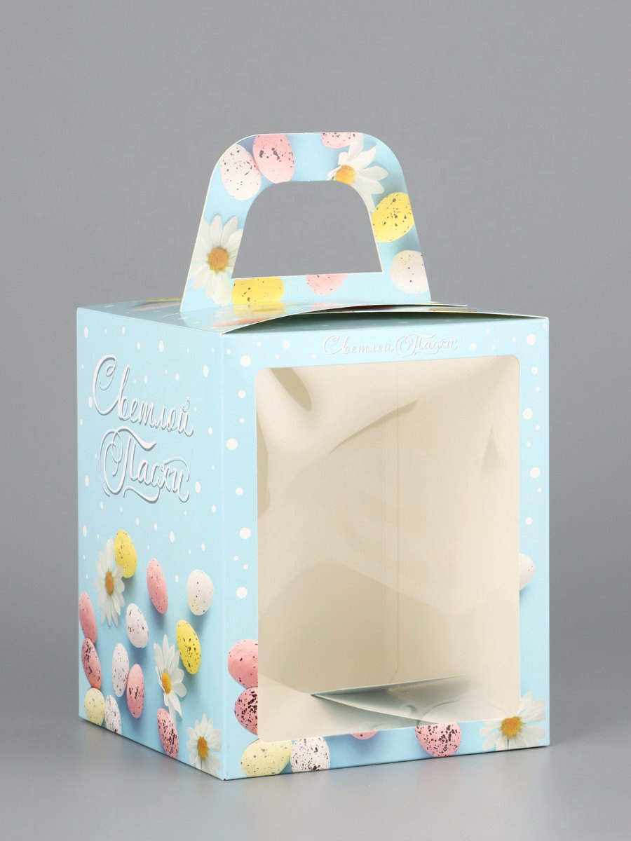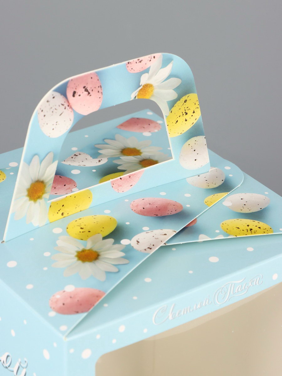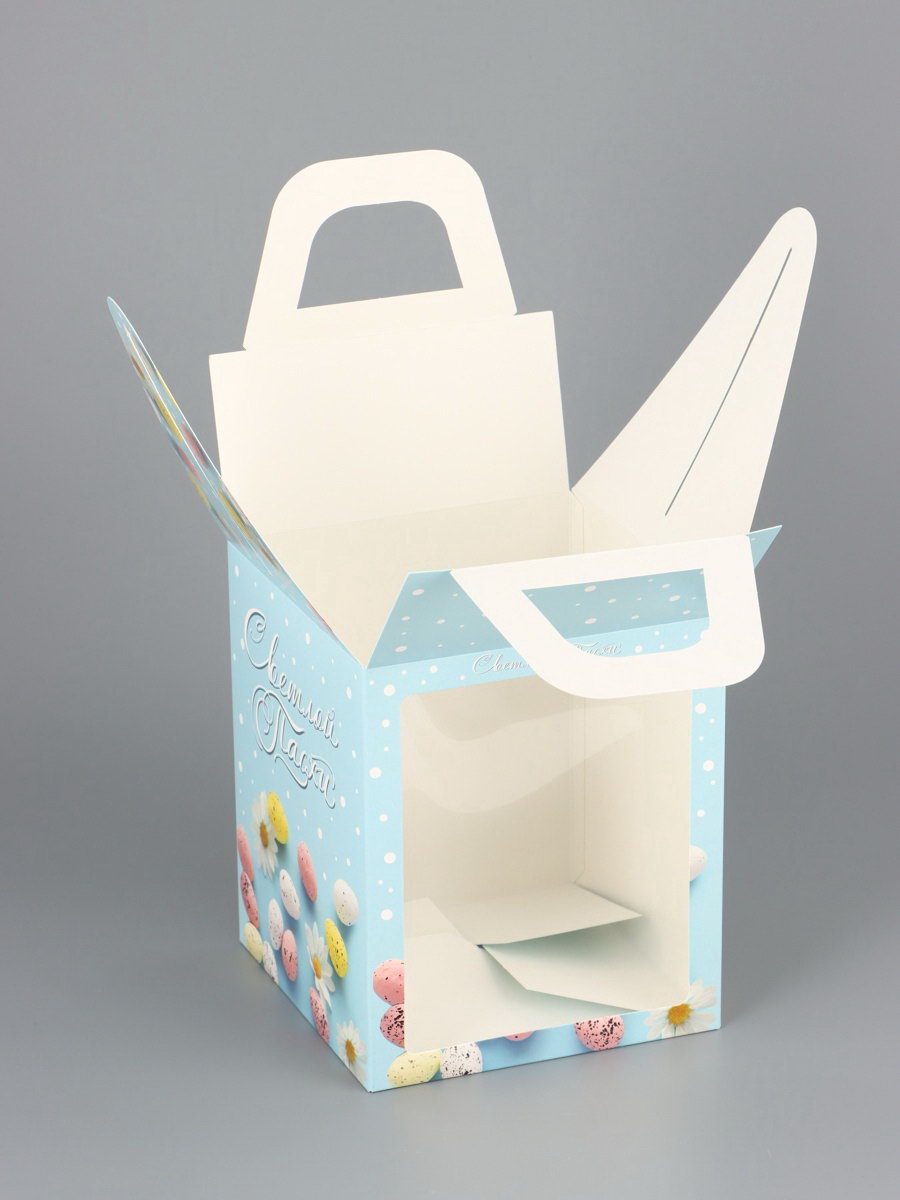 Коробка подарочная пасхальная с окном "Небесная голубая" 15x15x18 см, UPAK LAND, Россия