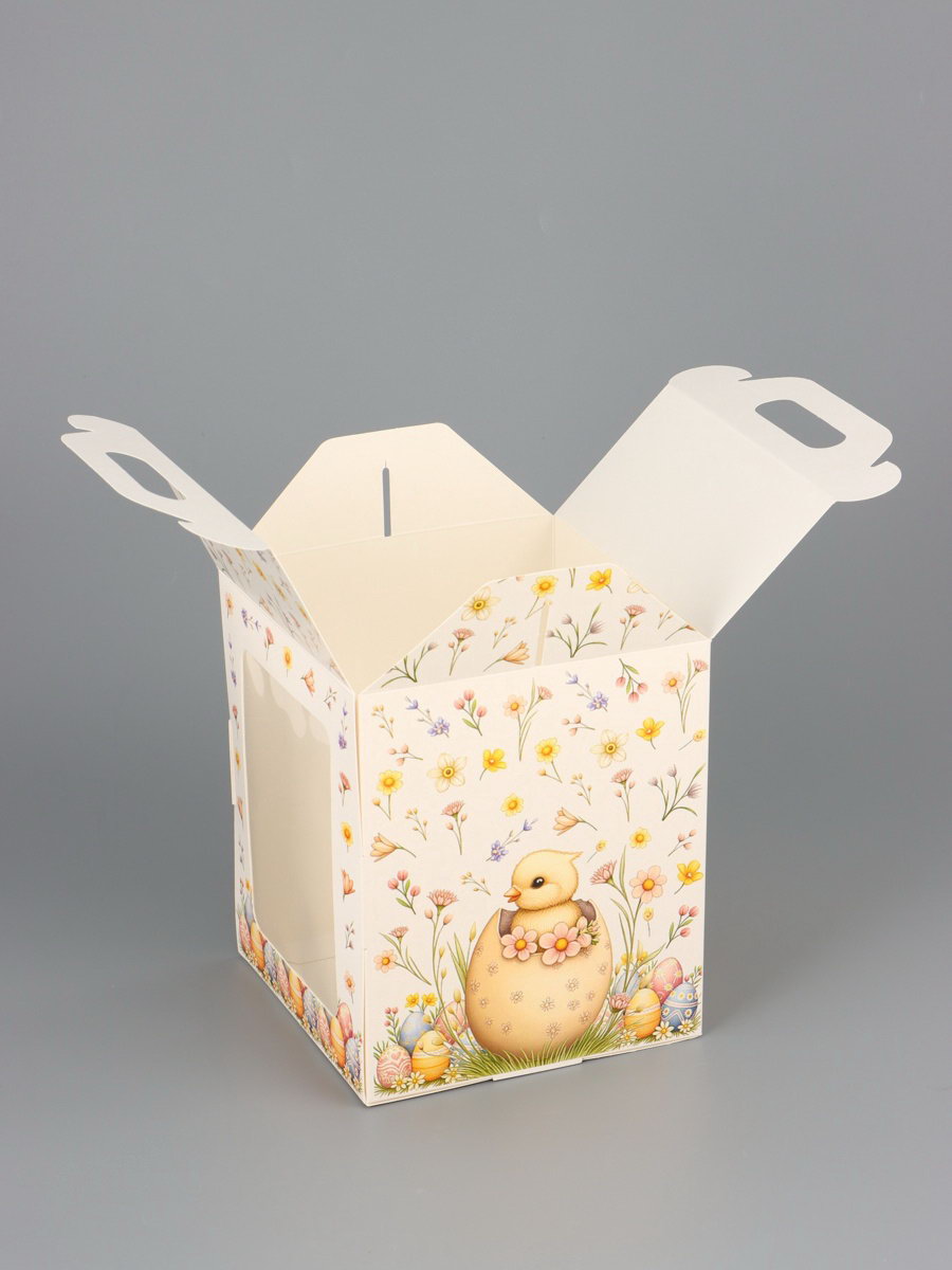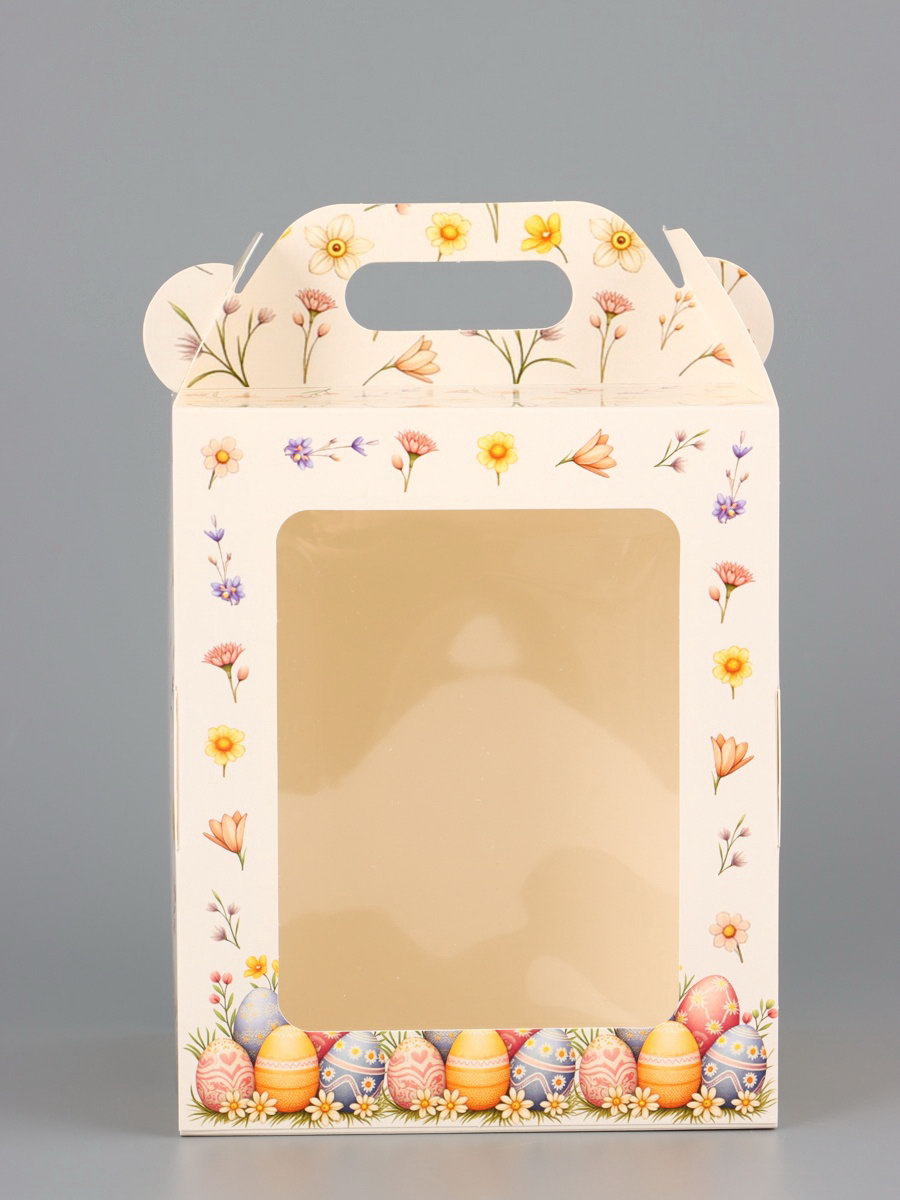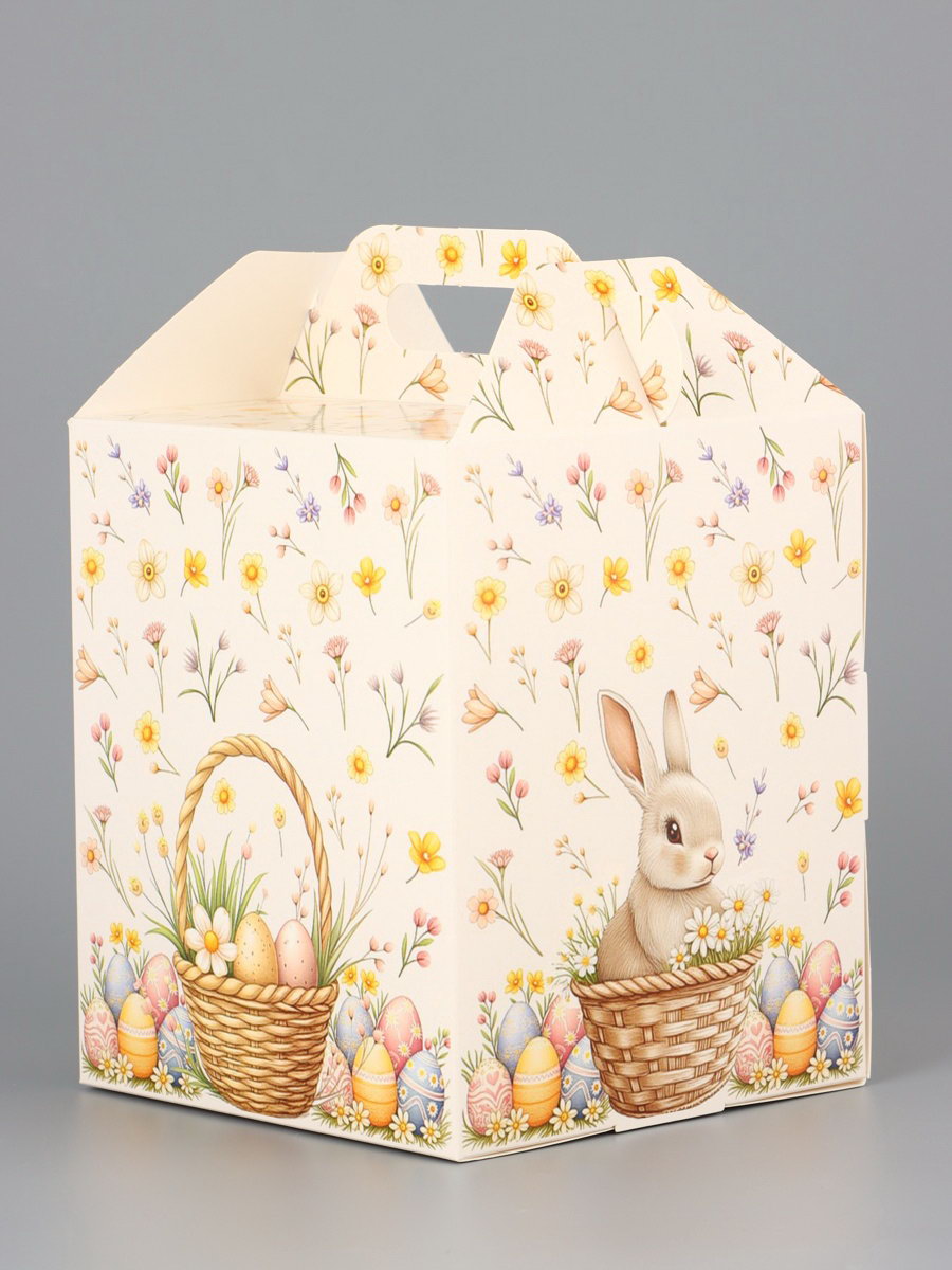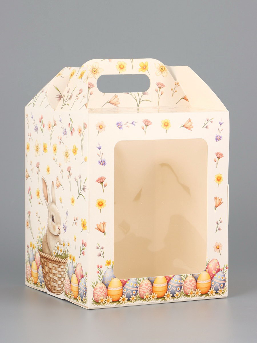Коробка подарочная пасхальная с окном, с фронтальной загрузкой "Кролик в корзинке" 15x15x18 см, UPAK LAND, Россия
