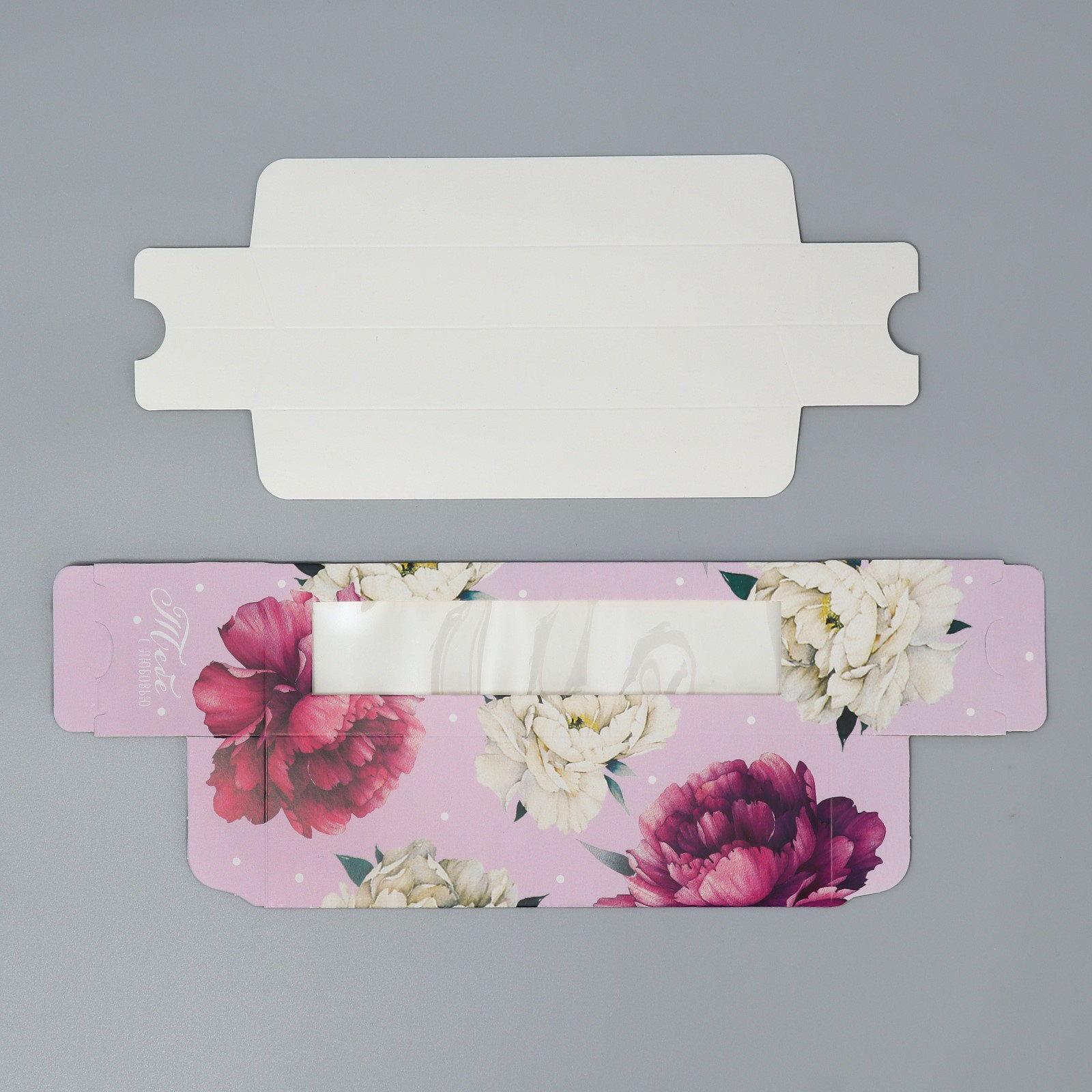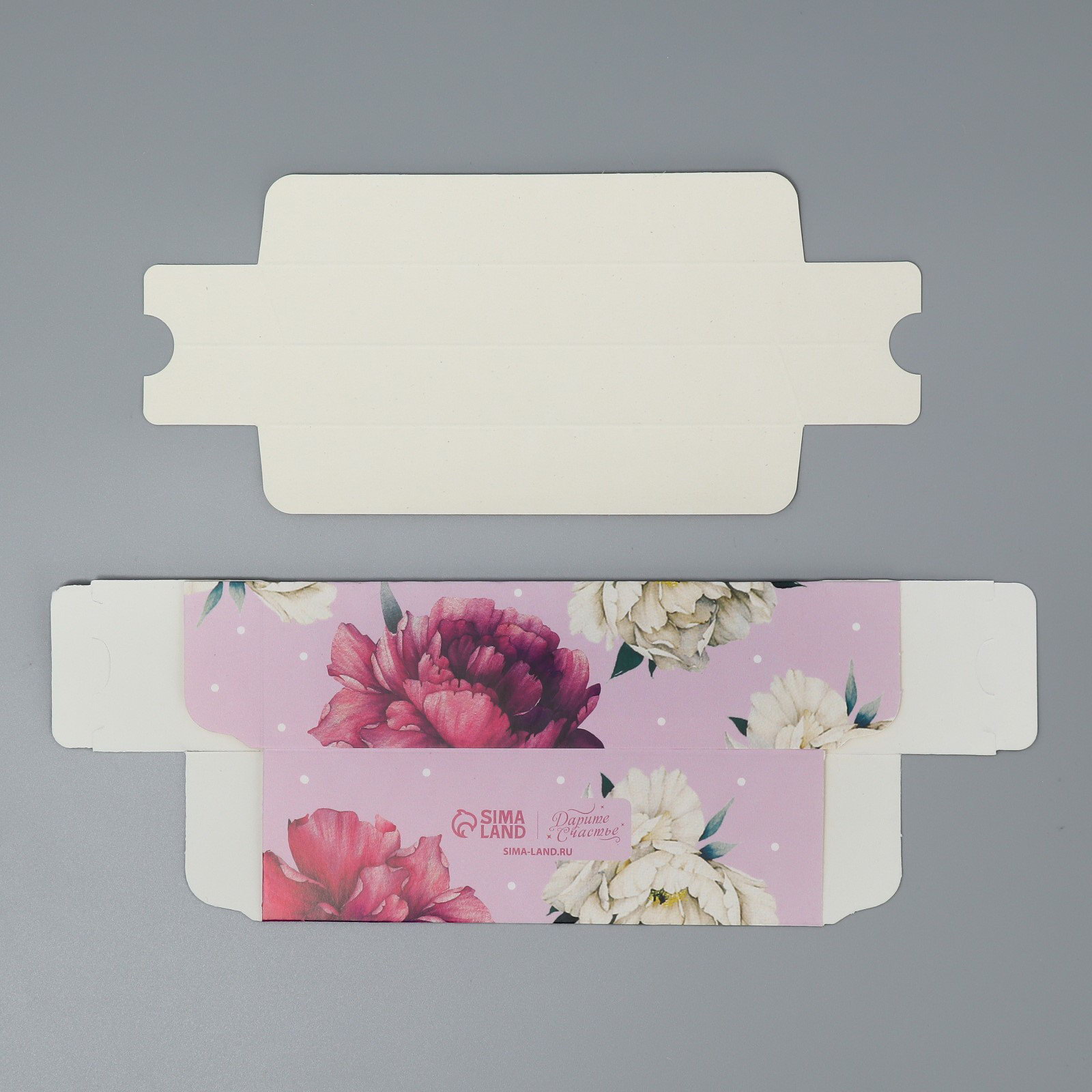 Коробка для макарун, кондитерская упаковка "Тебе с любовью", пионы, 5.5 x 18 x 5.5 см, 18x5.5x5.5 см., Дарите Счастье, Россия