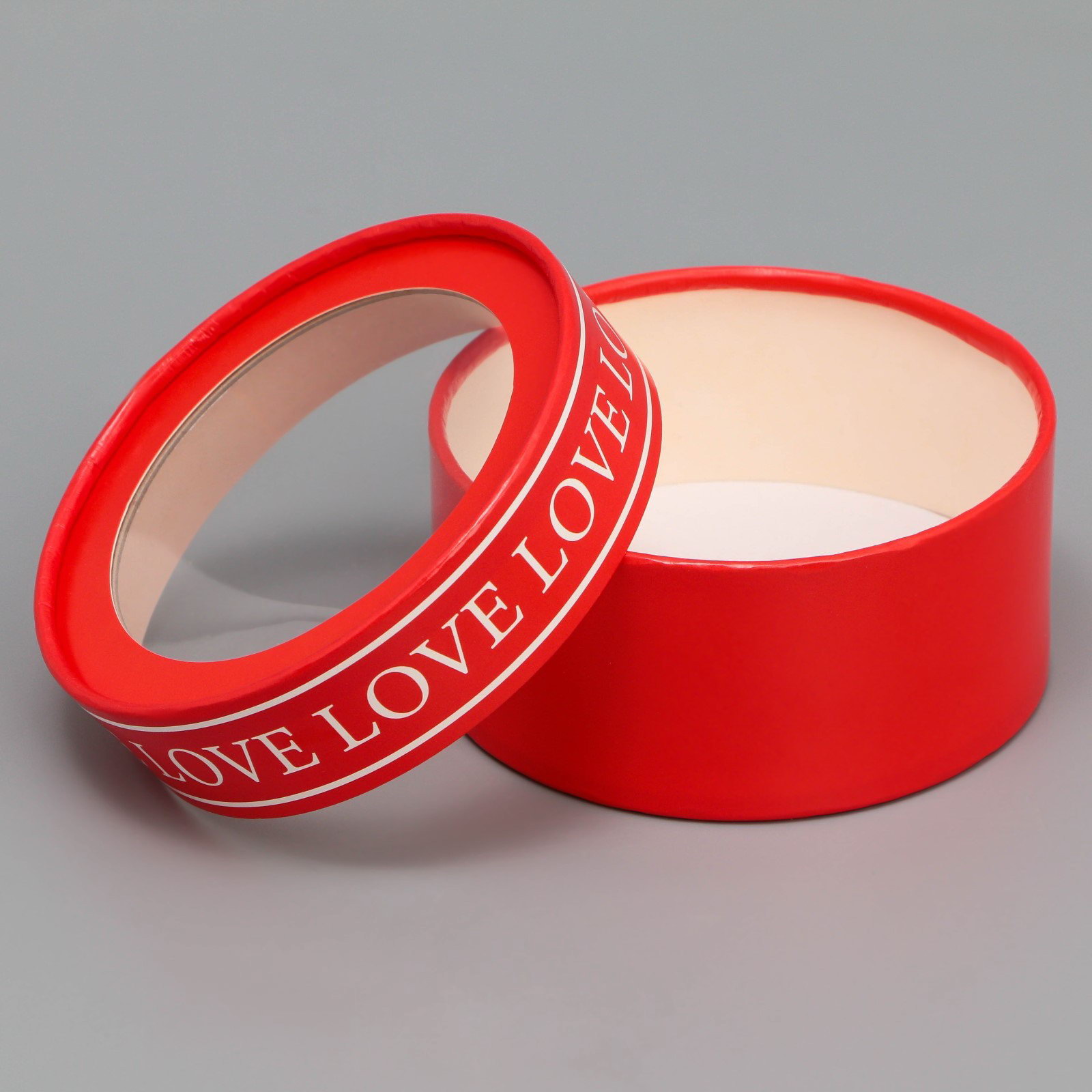 Коробка для макарун, кондитерская упаковка тубус с окном Love, 12x12x5 см, Дарите Счастье, Россия
