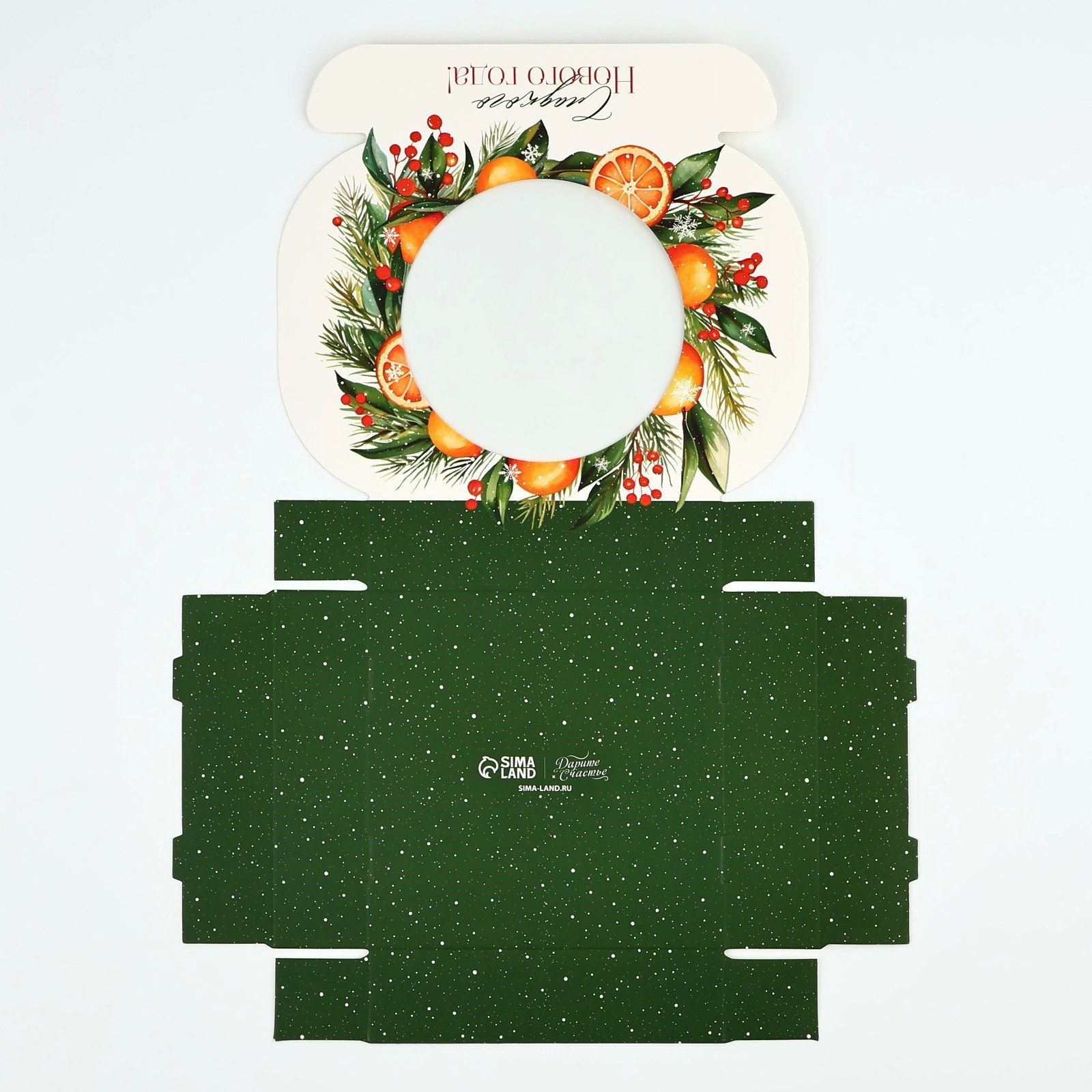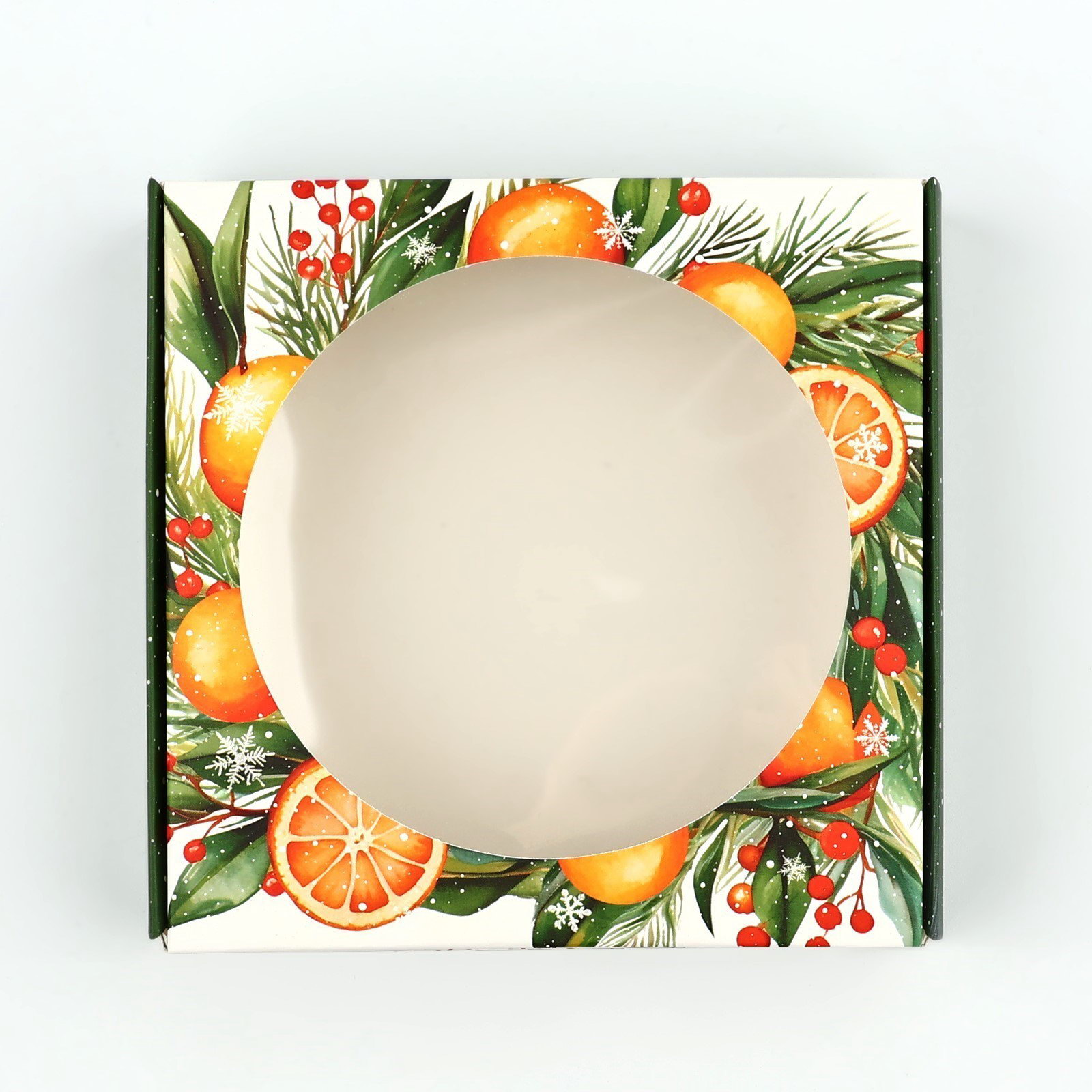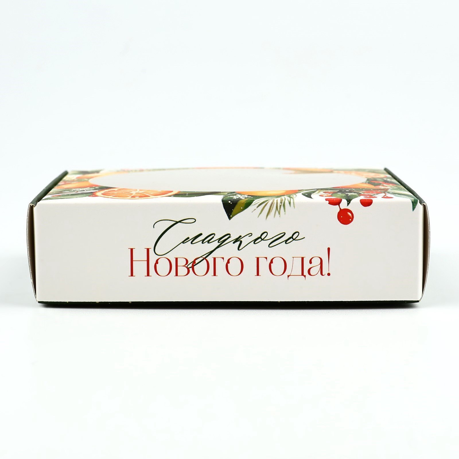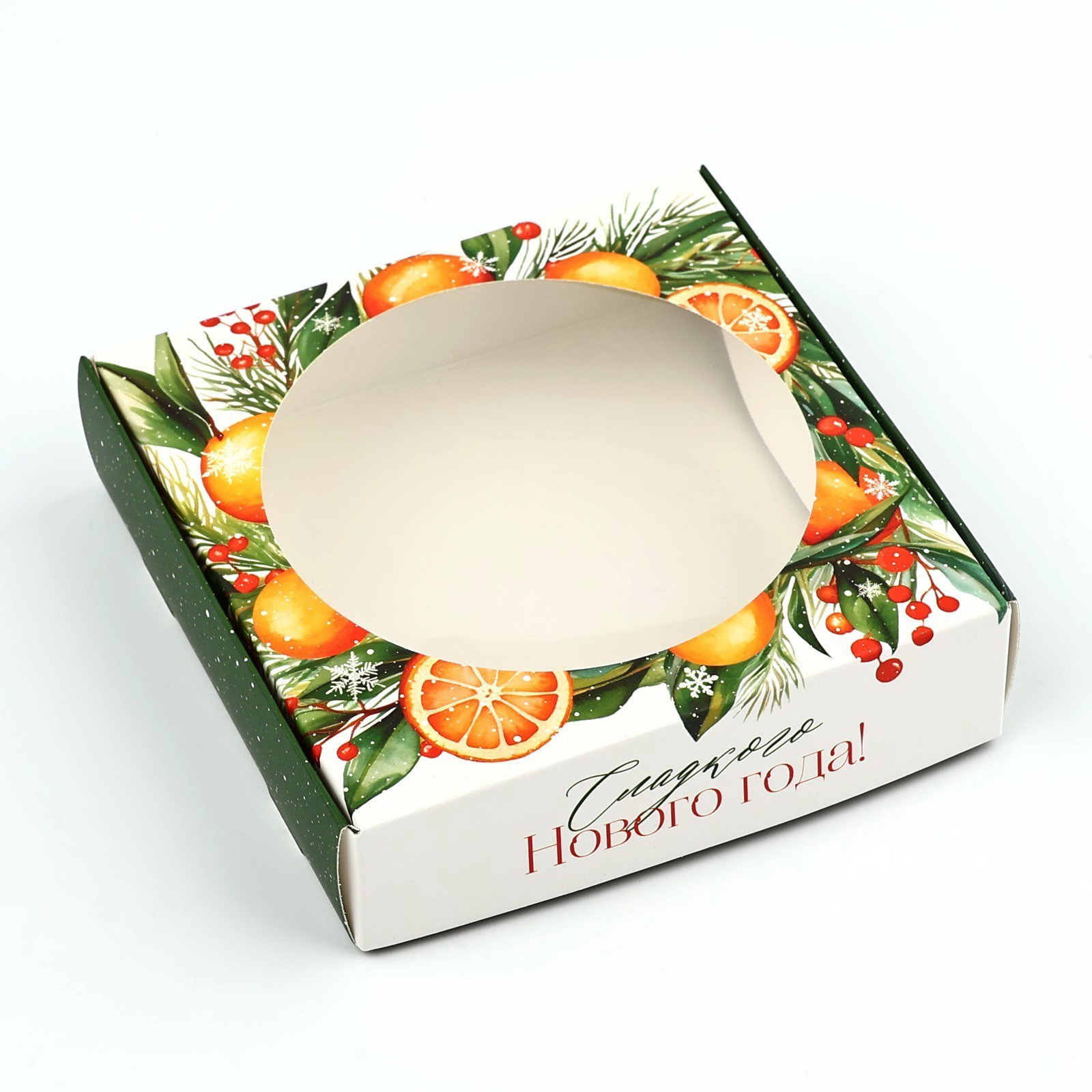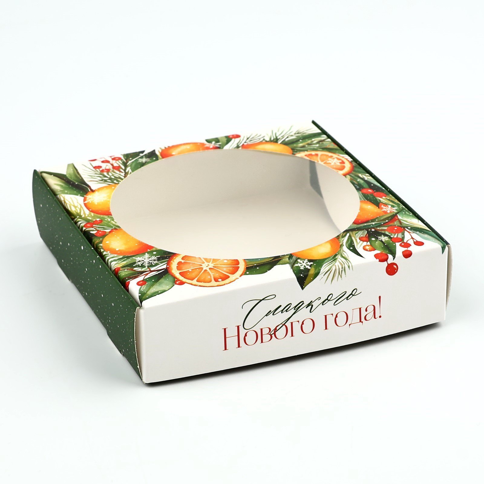 Коробка для макарун с низкими бортами "Сладкого Нового года!", венок, 11х 11х 3 см, Дарите Счастье, Китай