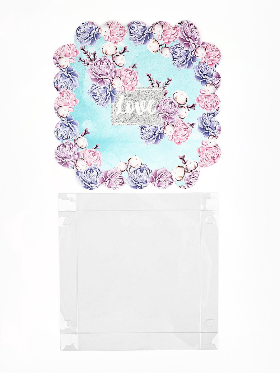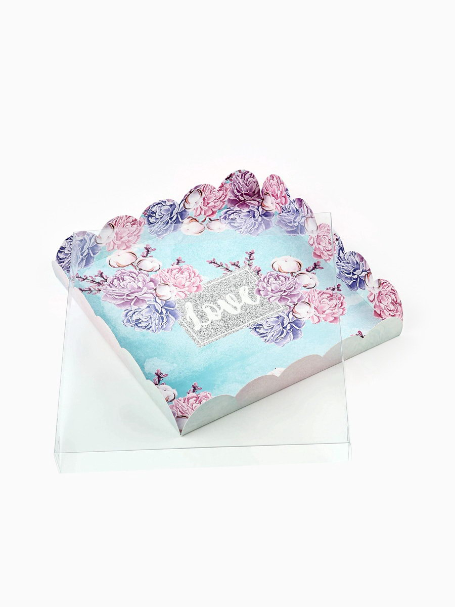 Коробка для печенья, кондитерская упаковка с пластиковой крышкой, "Нежность", 18 x 18 x 3 см, 3x18x18 см., Дарите Счастье, Китай