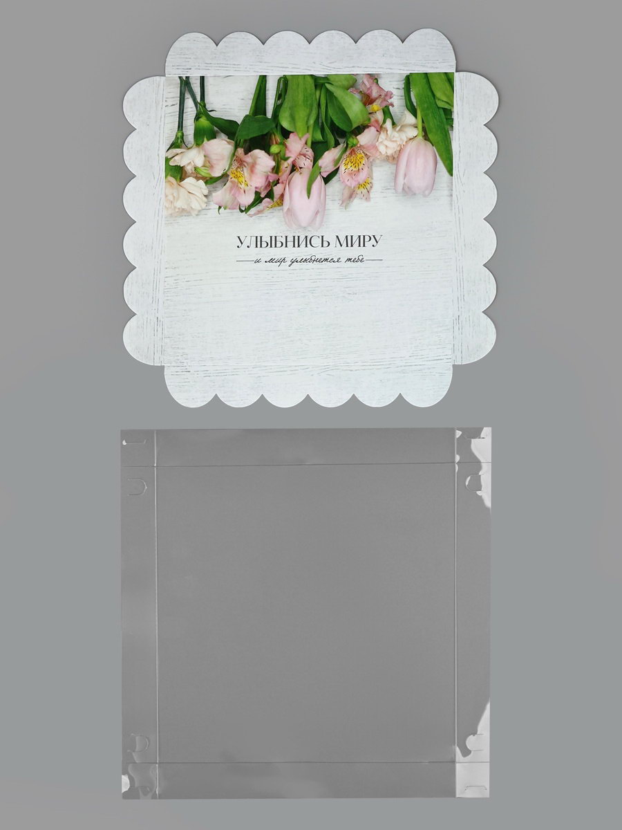 Коробка для печенья, кондитерская упаковка с пластиковой крышкой, "Улыбнись миру", 21x21x3 см, 3x21x21 см., Дарите Счастье, Китай