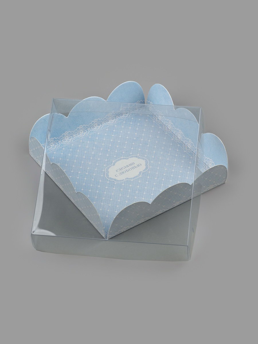 Коробка для печенья, кондитерская упаковка с пластиковой крышкой, "Сделано с любовью", 10.5 x 10.5 x 3 см, 10.5x10.5x3 см., Дарите Счастье, Китай