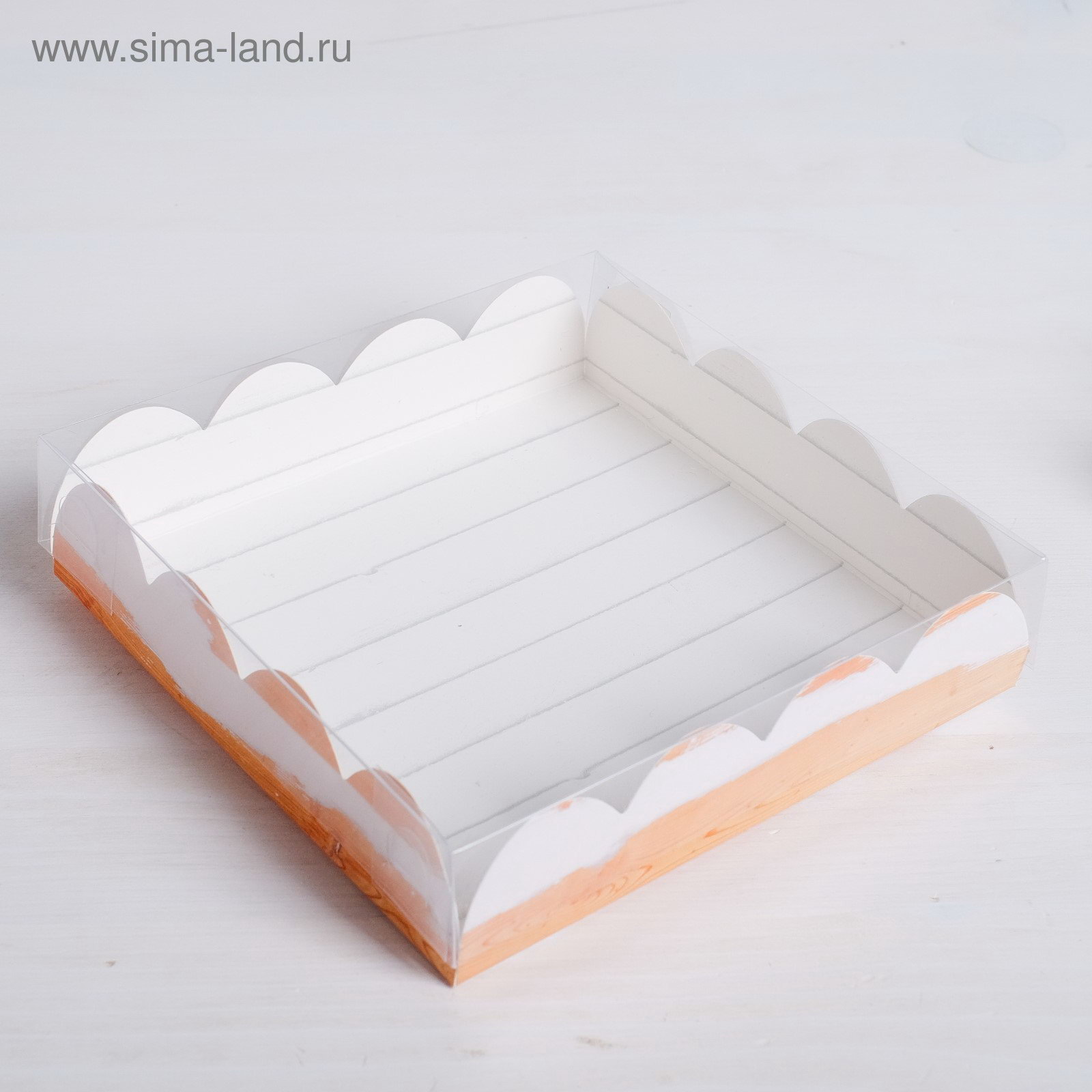 Коробка для печенья, кондитерская упаковка с PVC крышкой, "Вкусно", 13x13x3 см, 3x13x13 см., Дарите Счастье, Китай