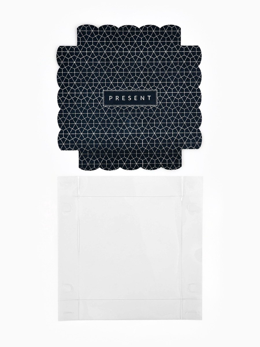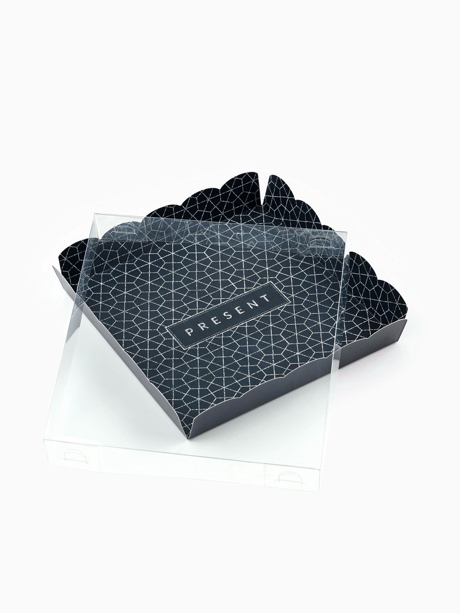 Коробка для печенья, кондитерская упаковка с пластиковой крышкой, Present, 15 x 15 x 3 см, 3x15x15 см., Дарите Счастье, Китай