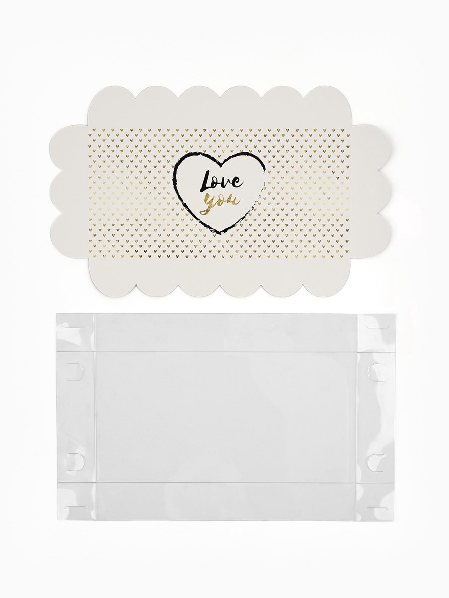 Коробка для печенья, кондитерская упаковка с пластиковой крышкой, Love you, тиснение, 21x10.5x3 см, 10.5x21x3 см., Дарите Счастье, Китай