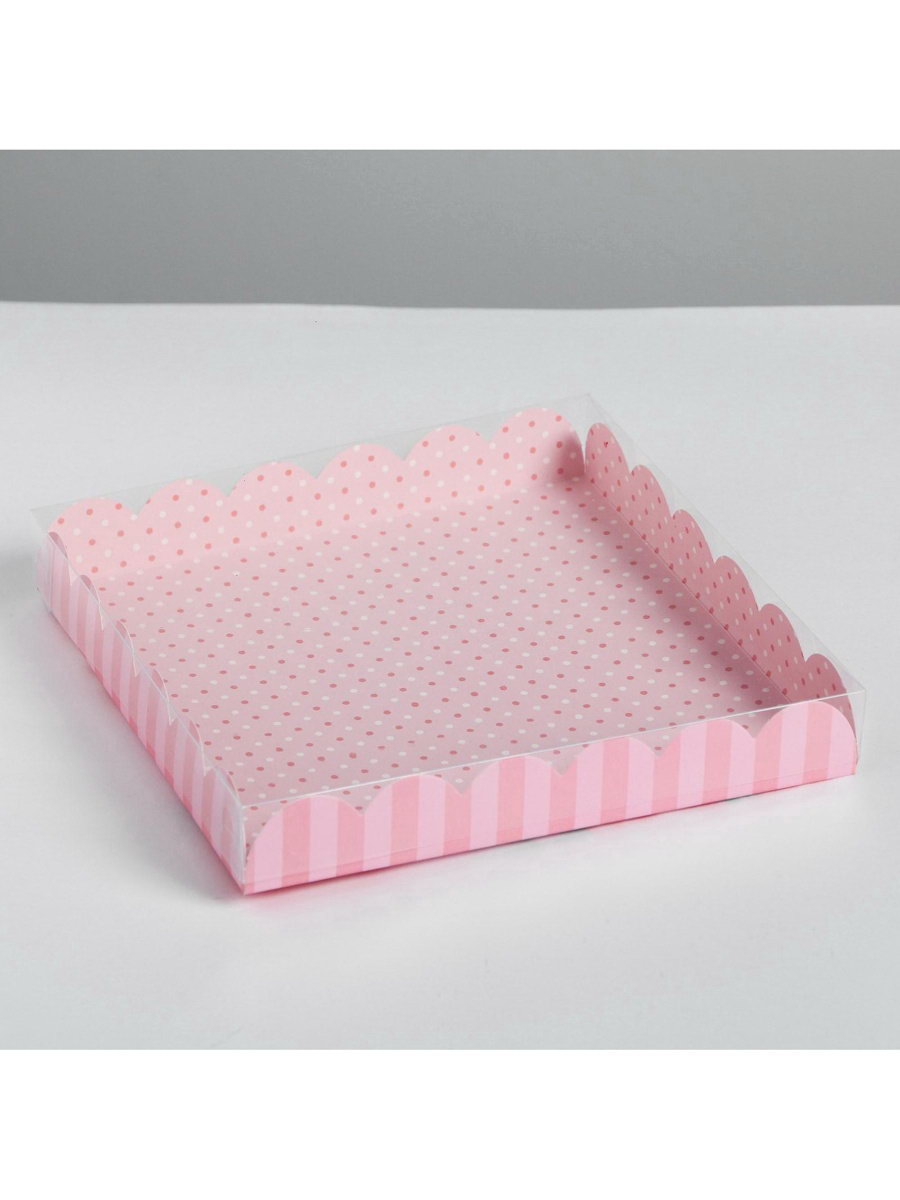 Коробка для печенья, кондитерская упаковка с пластиковой крышкой, "8 марта", 21x21x3 см, 21x21x3 см., Дарите Счастье, Китай