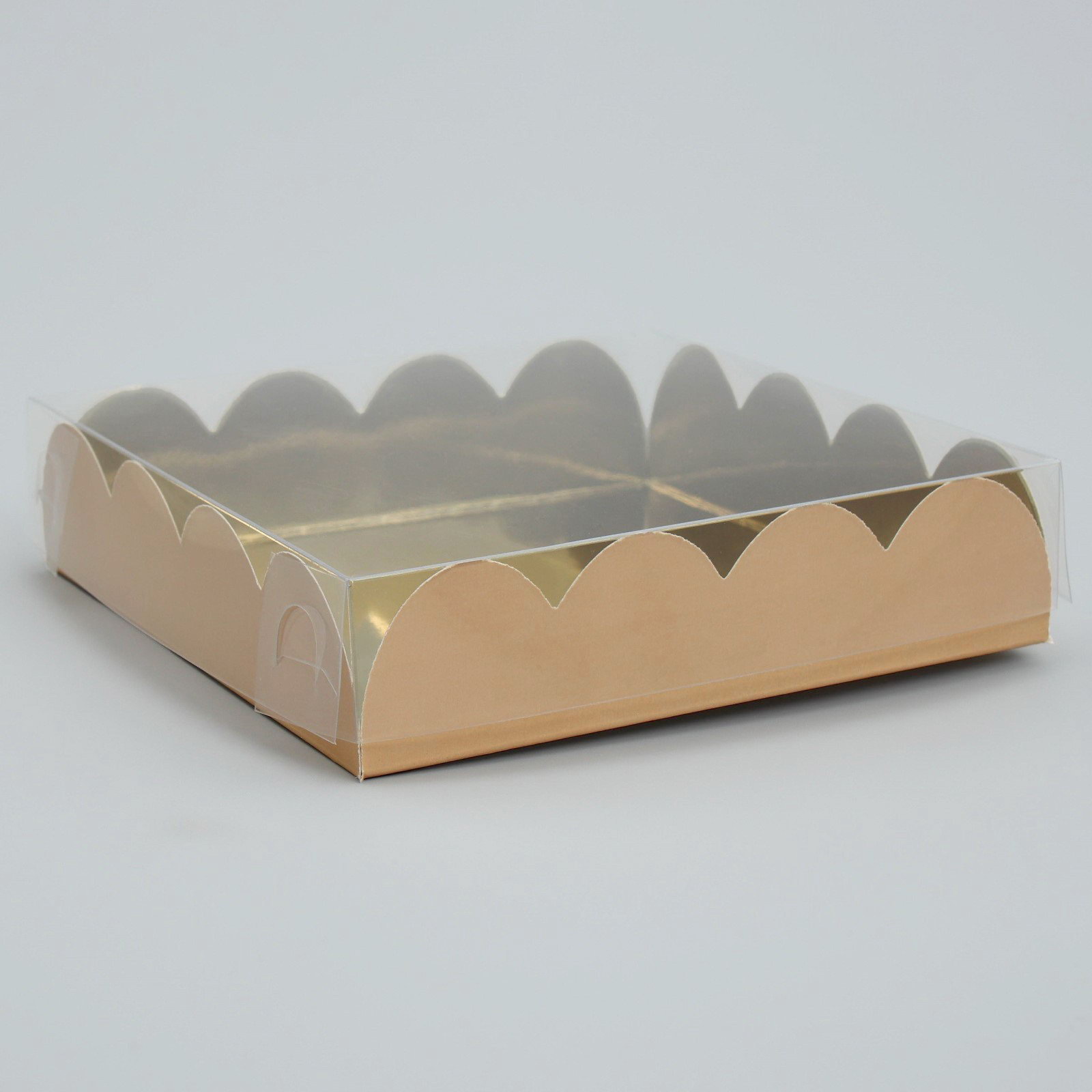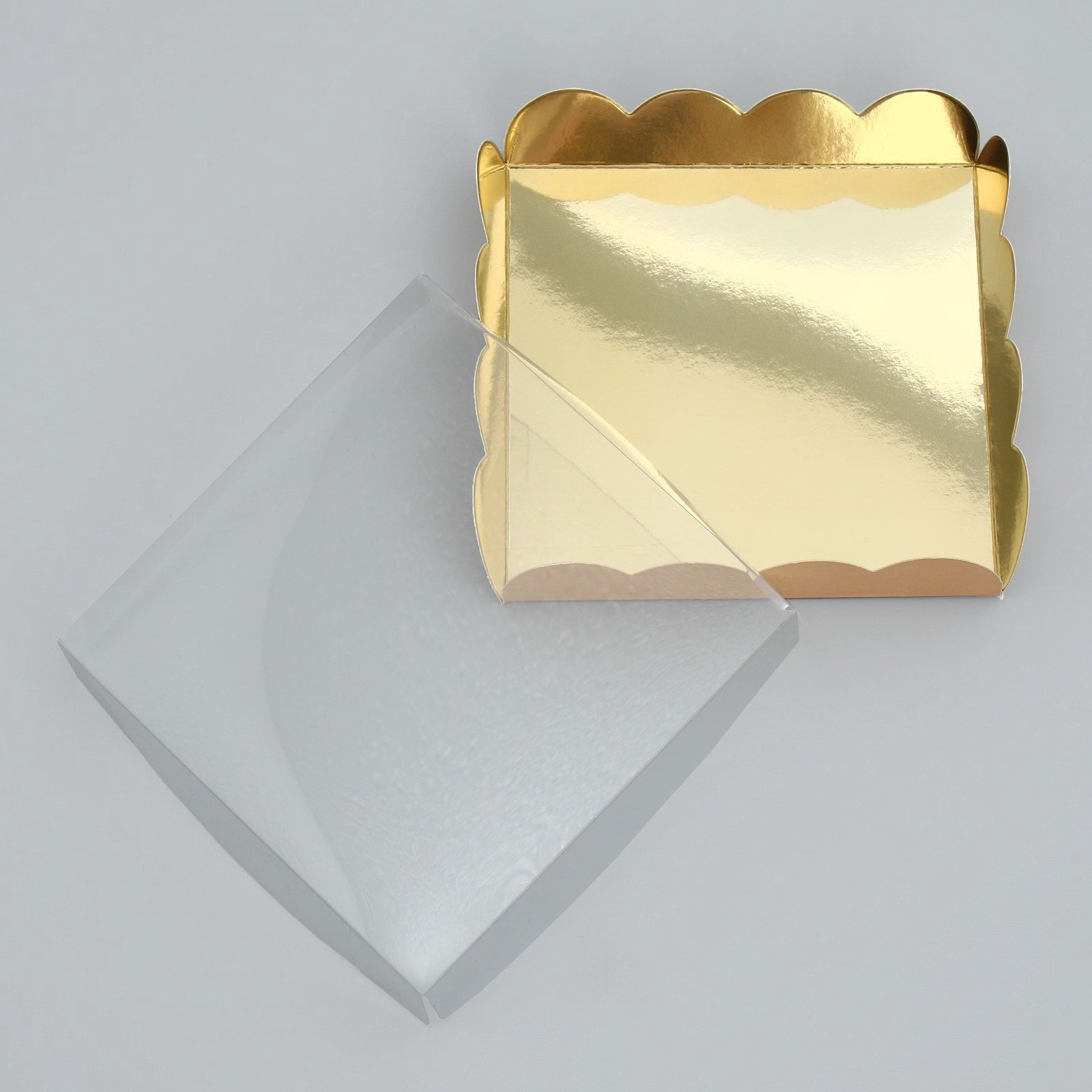 Коробка для печенья, кондитерская упаковка с PVC крышкой, "Игристая", 13 x 13 x 3 см, 13x13x3 см., Дарите Счастье, Китай