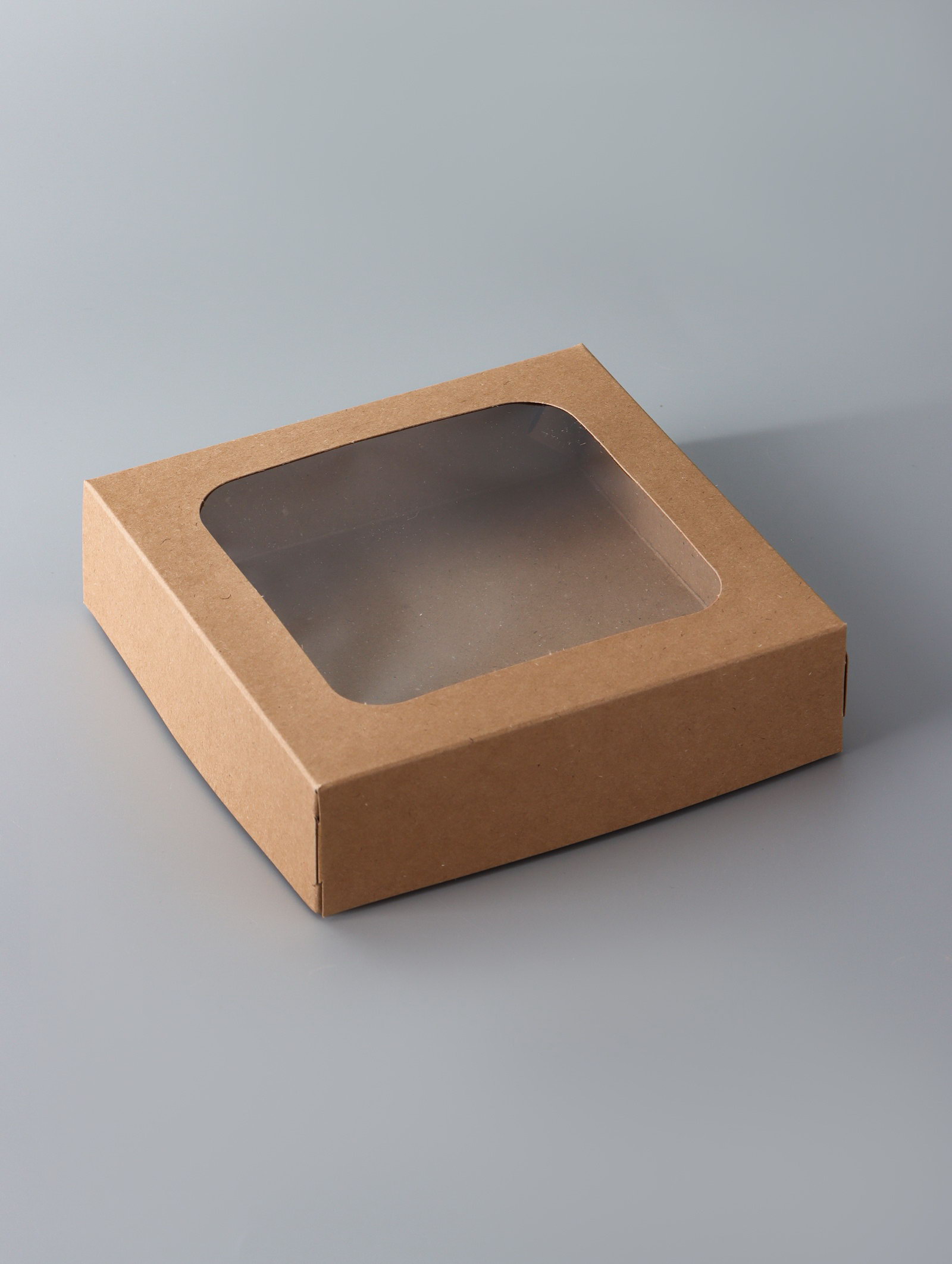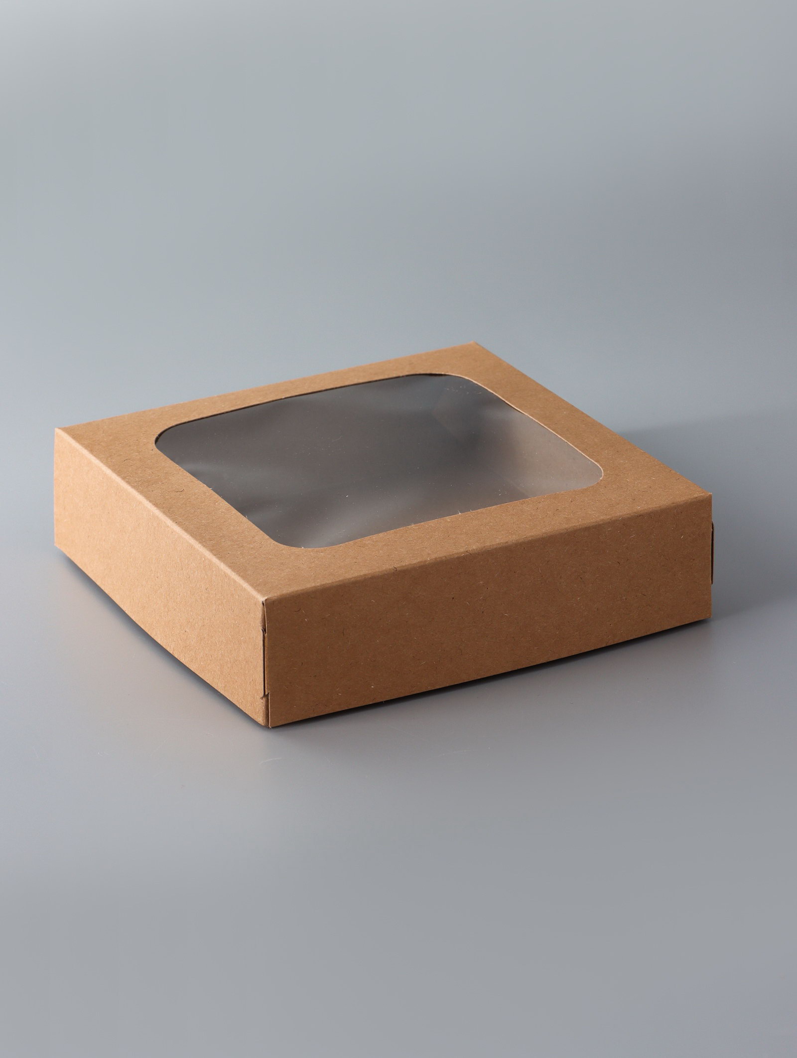 Коробка складная, с окном, крафт, 15x15x4 см, 15x15x4 см., UPAK LAND, Китай