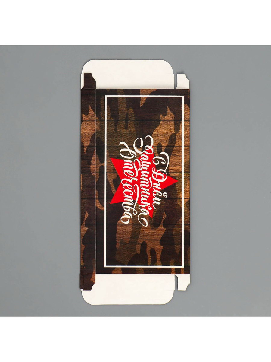 Тематика: Военная, Камуфляж, Мужская Размер упаковки: 10.5 x 0.1 x 23 см. Вид упаковки: Для шоколада Ширина, см: 8.5 Длина, см: 17 Плотность, г/?2: 250 Крышка-дно: Нет Окошко: Да tnved: 4819200000 Цвет: Коричневый Допустимый вес вложения, г: 100 Тематика праздника: 23 Февраля Для кого: Для мужчины Набор: Нет Дизайн: С рисунком, надписью Температурное ограничение: Нет Вид: Прямоугольные Размер: Малый (11-17 см) см Символ года: Нет Высота, см: 1.5 Форма: Прямоугольная | ||