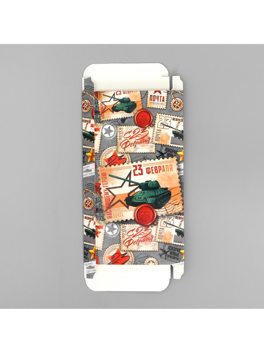 Коробка для шоколада, кондитерская упаковка "С 23 Февраля", с окном, 17.3 x 8.8 x 1.5 см, 8.8x17.3x1.5 см., Дарите Счастье, Китай