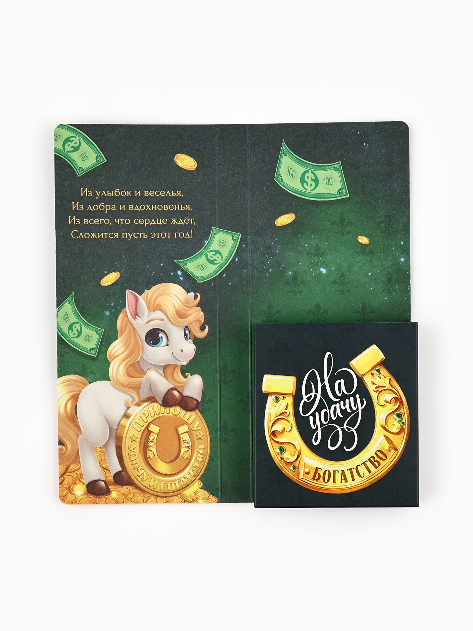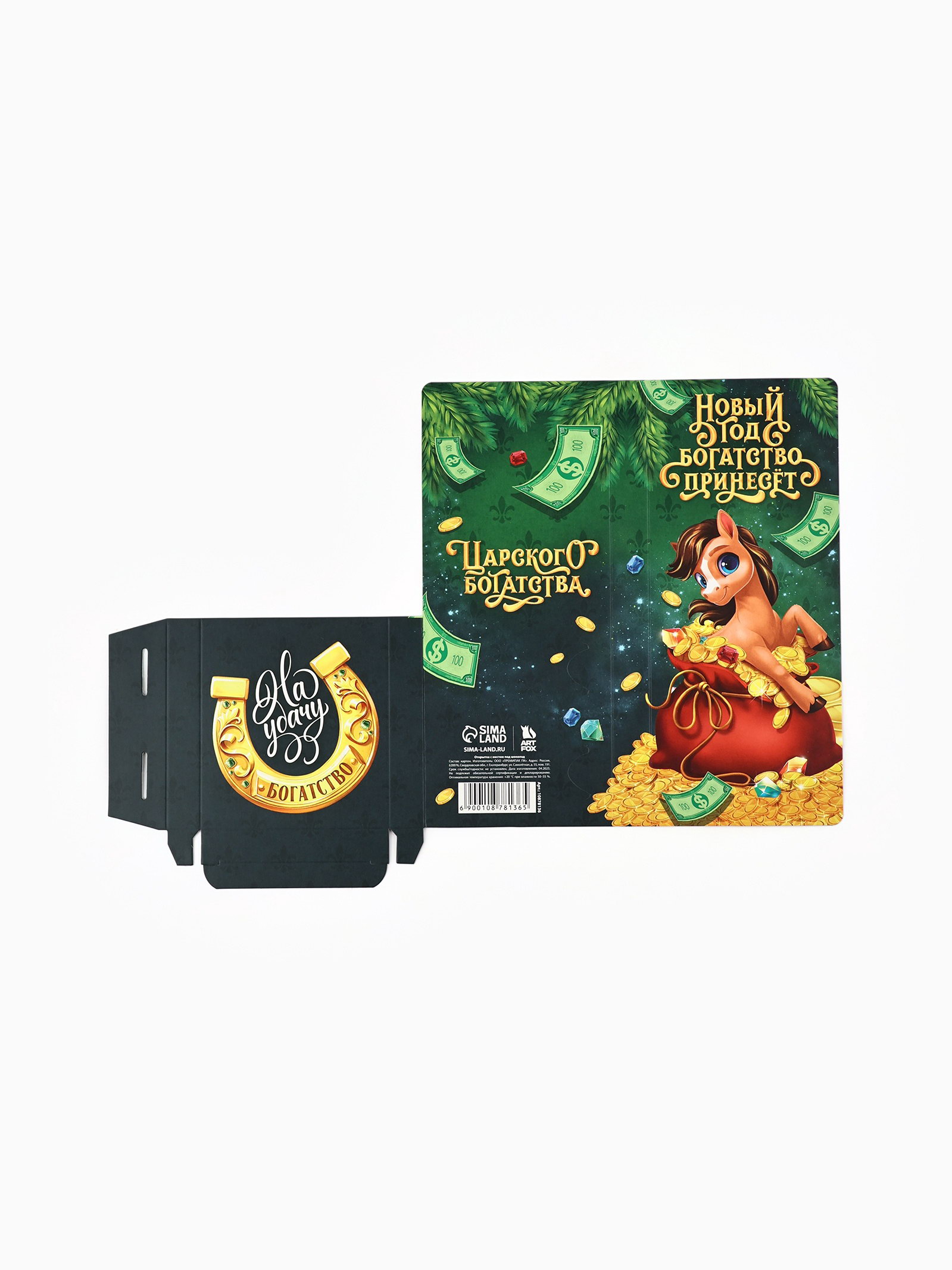 Открытка с местом под шоколадку "Новый год 2026", лошадь 19 x 8 x 1.5 см, ArtFox, Россия