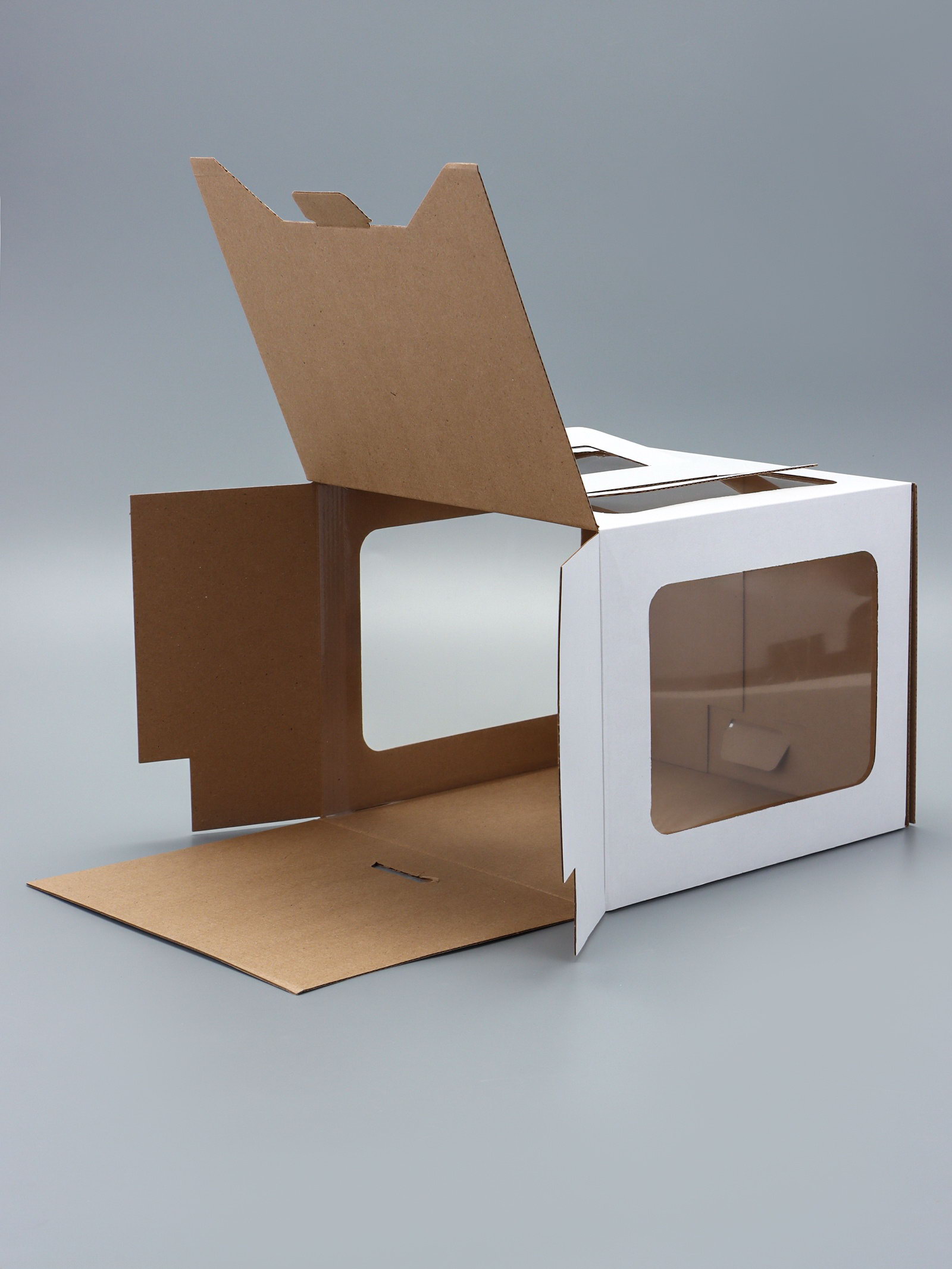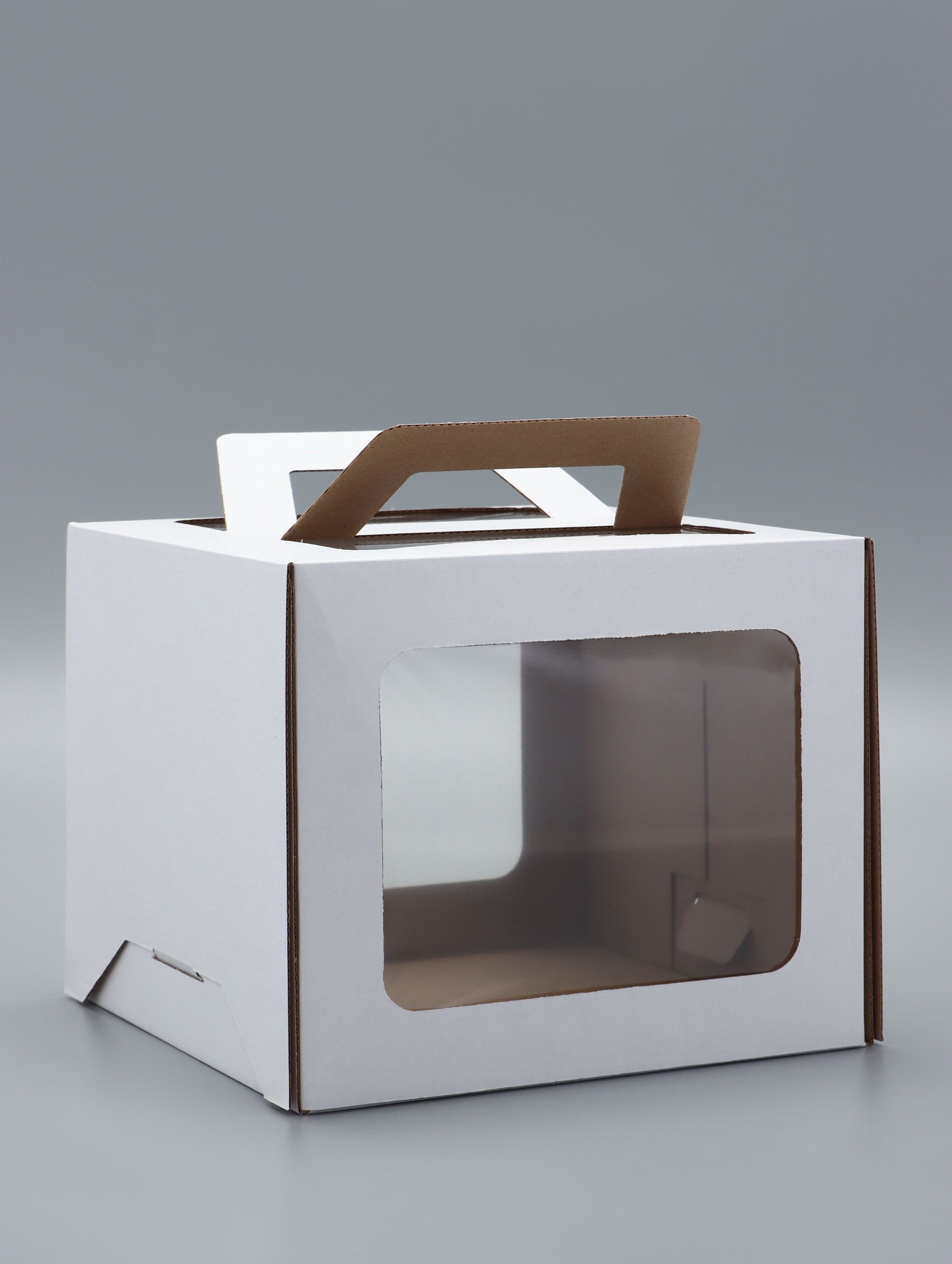Коробка под торт 2 окна, с ручками, белая, 24x24x20 см, UPAK LAND, Россия