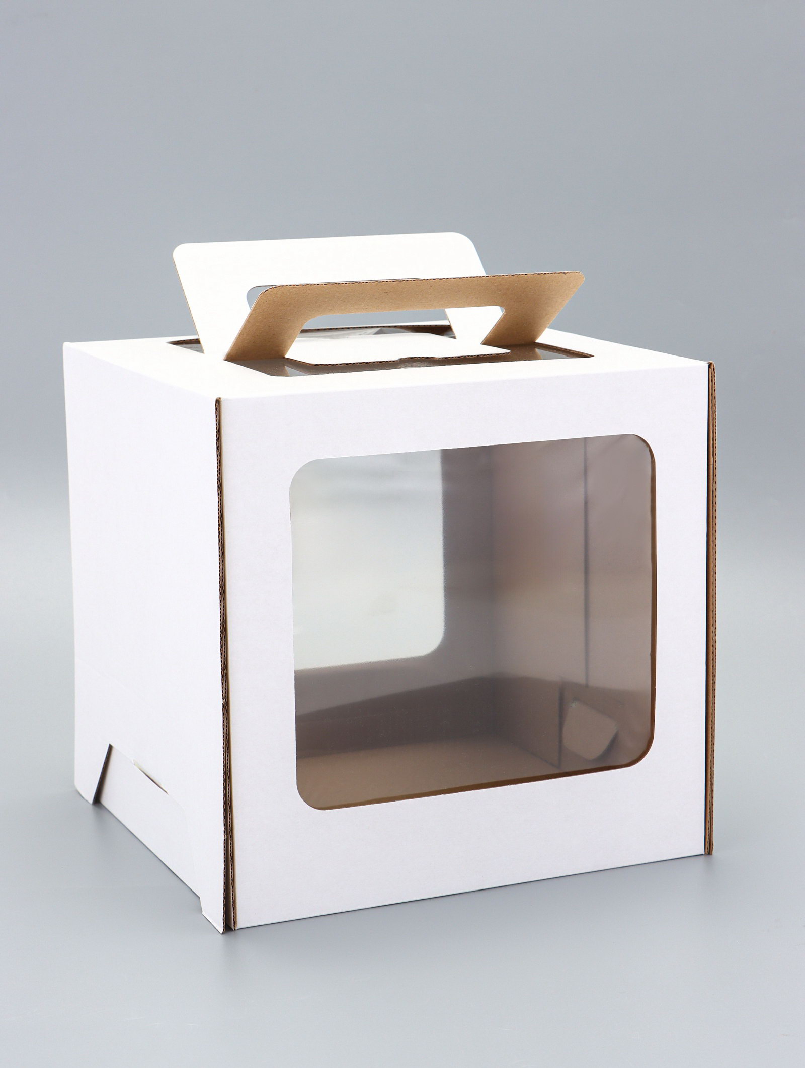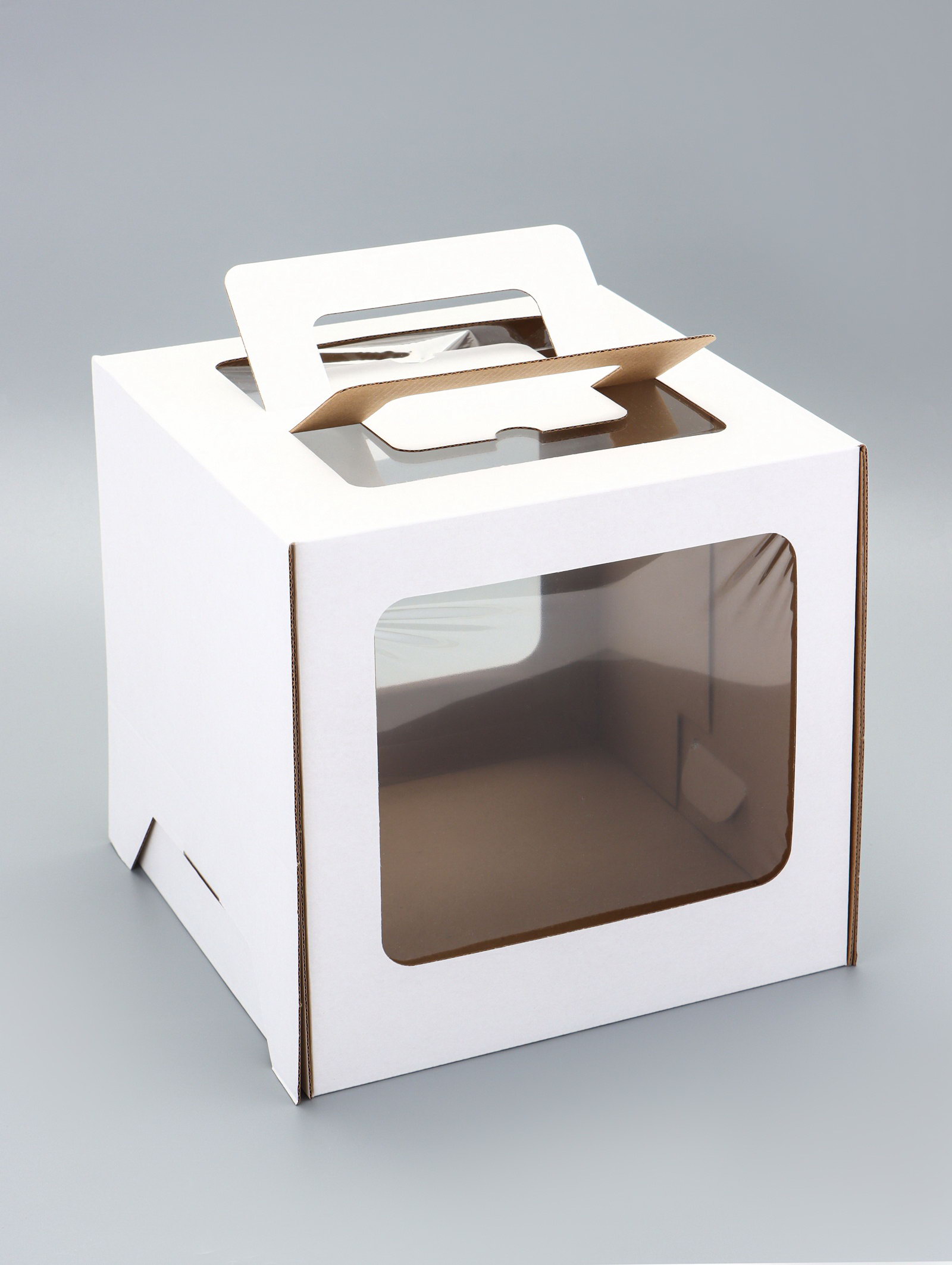 Коробка под торт 2 окна, с ручками, белая, 24x24x24, UPAK LAND, Россия