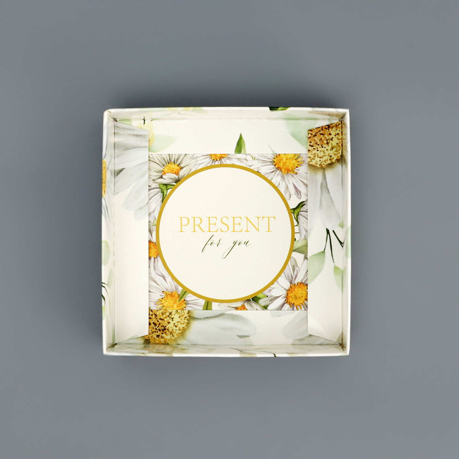 Коробка сборная с PVC крышкой, "Ромашки", 10x10x10 см, 10x10x10 см., UPAK LAND, Китай