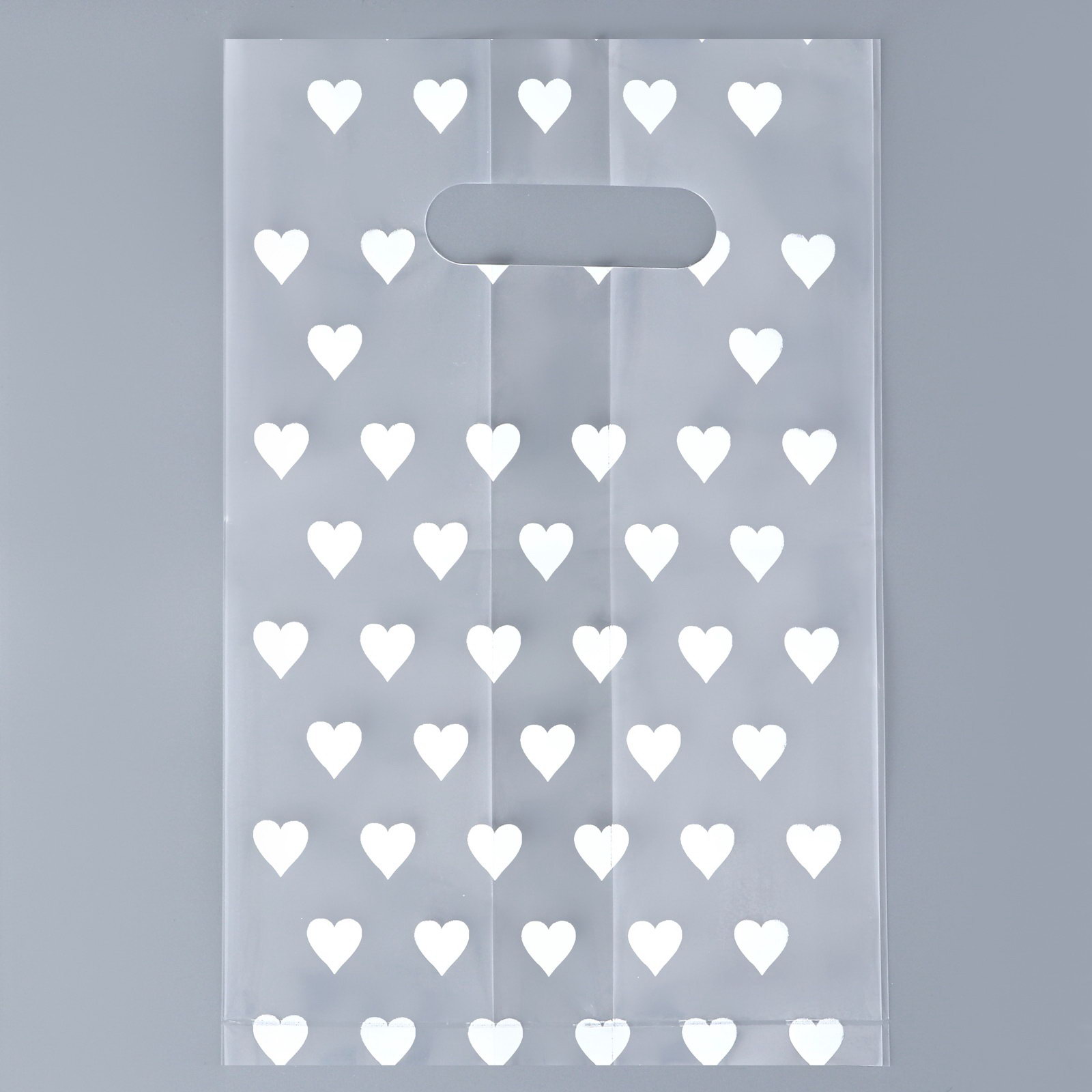 Пакет полиэтиленовый квадратный с вырубной ручкой, упаковка, "Сердечки", 15x25+6 см +-5% 60 мкм, 15x0.1x26 см., UPAK LAND, Китай