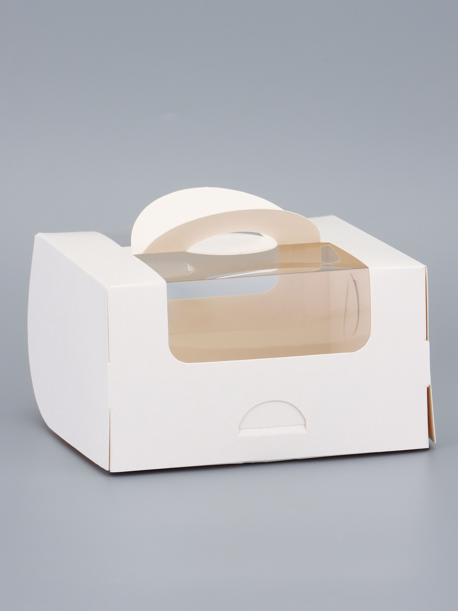 Коробка под бенто - торт с окном, белая, 14x14x8 см, UPAK LAND, Россия