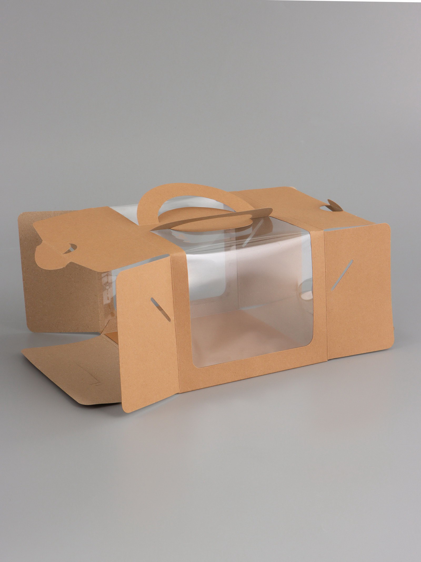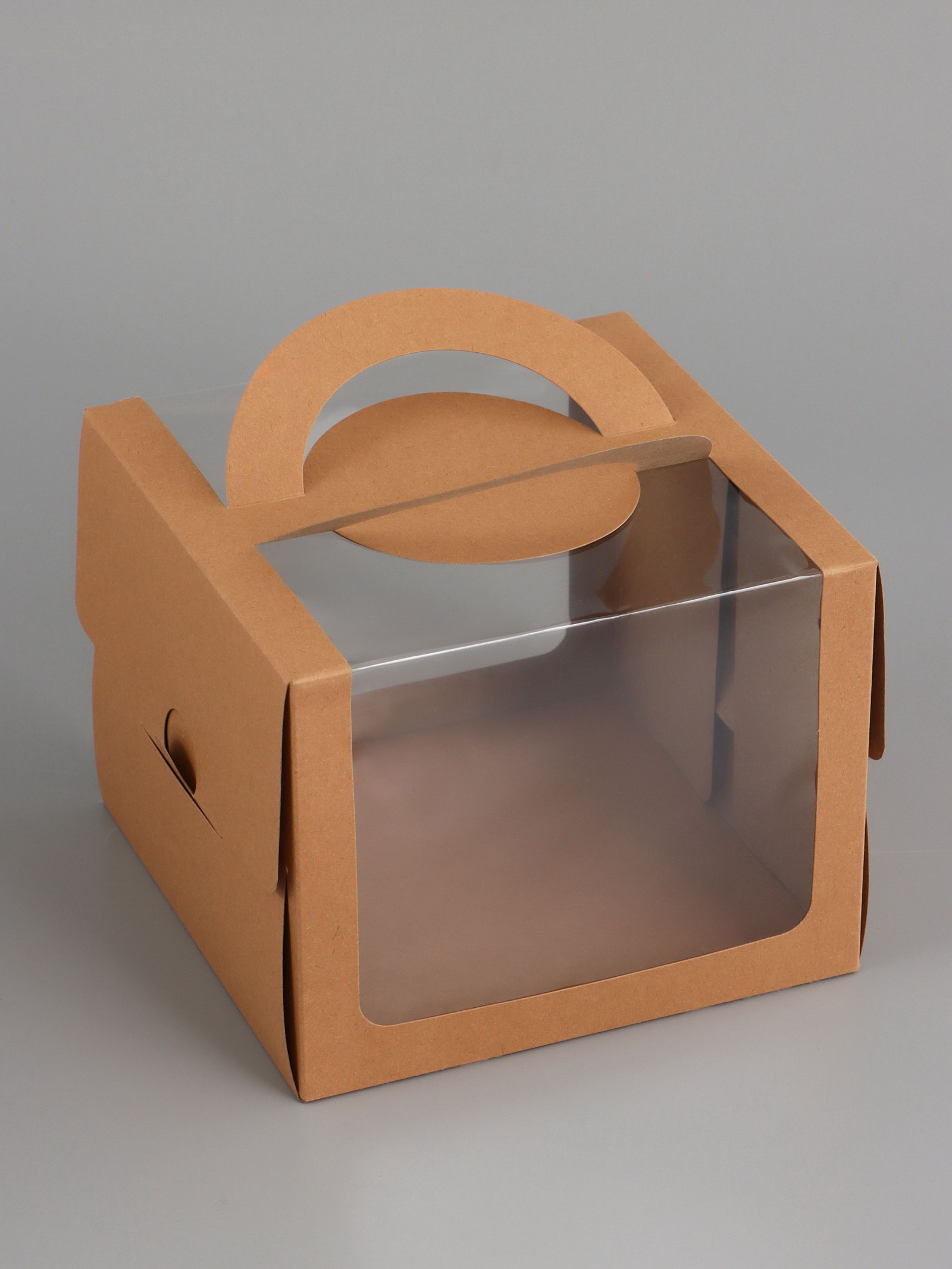 Коробка под бенто-торт с окном, крафт, 18x18x14 см, 18x18x14 см., UPAK LAND, Китай