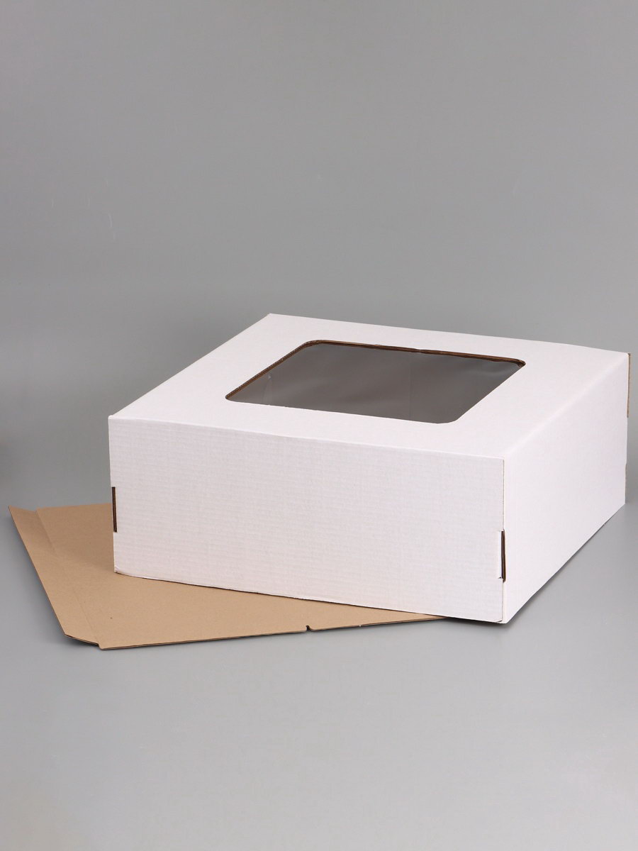 Коробка для торта, с окном, белая, 50x50x20 см, Россия