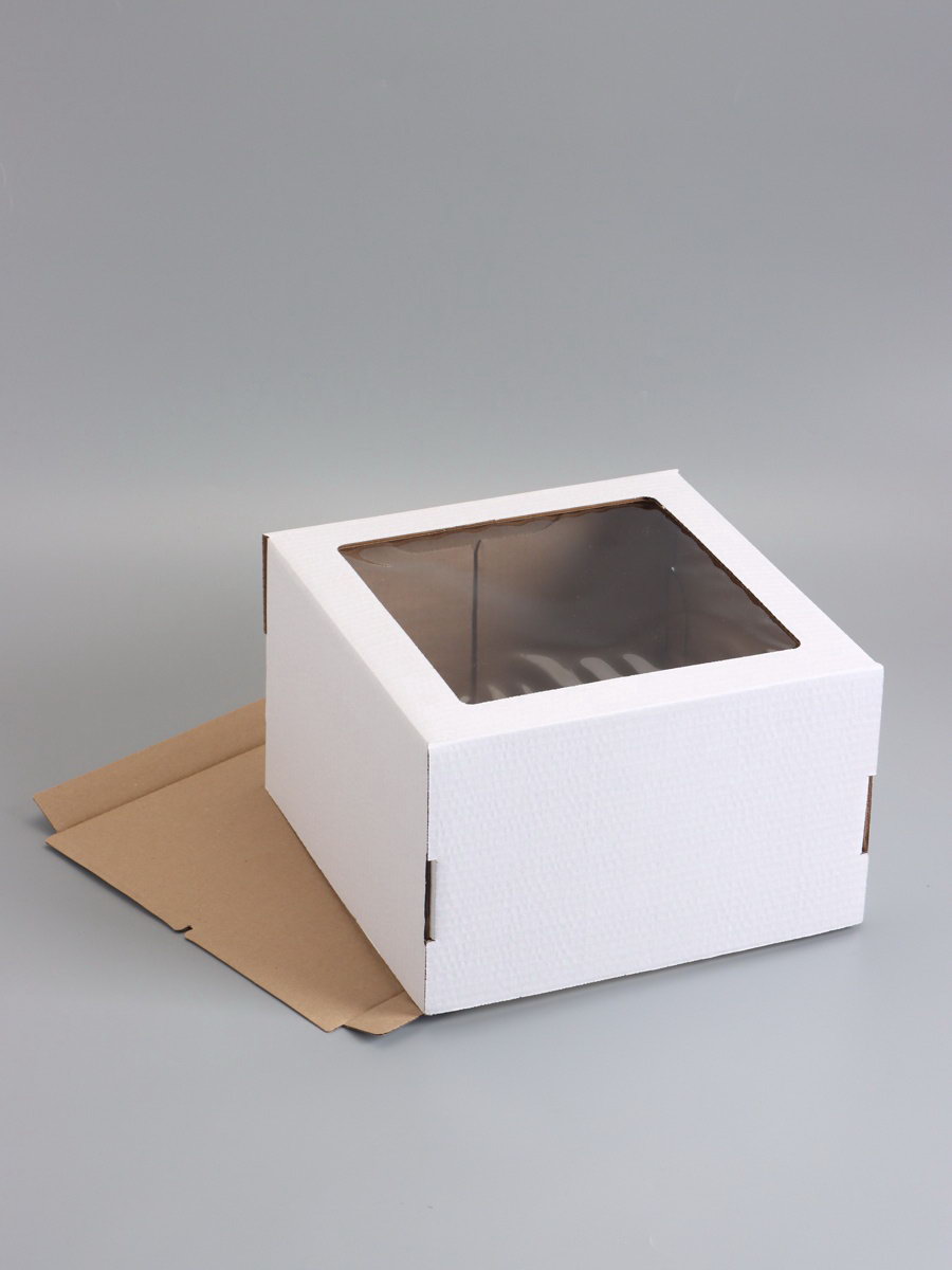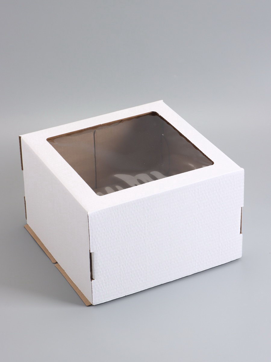 Коробка для торта, кондитерская, белая, с окном 30x30x19 см, Набор10 шт., UPAK LAND, Россия