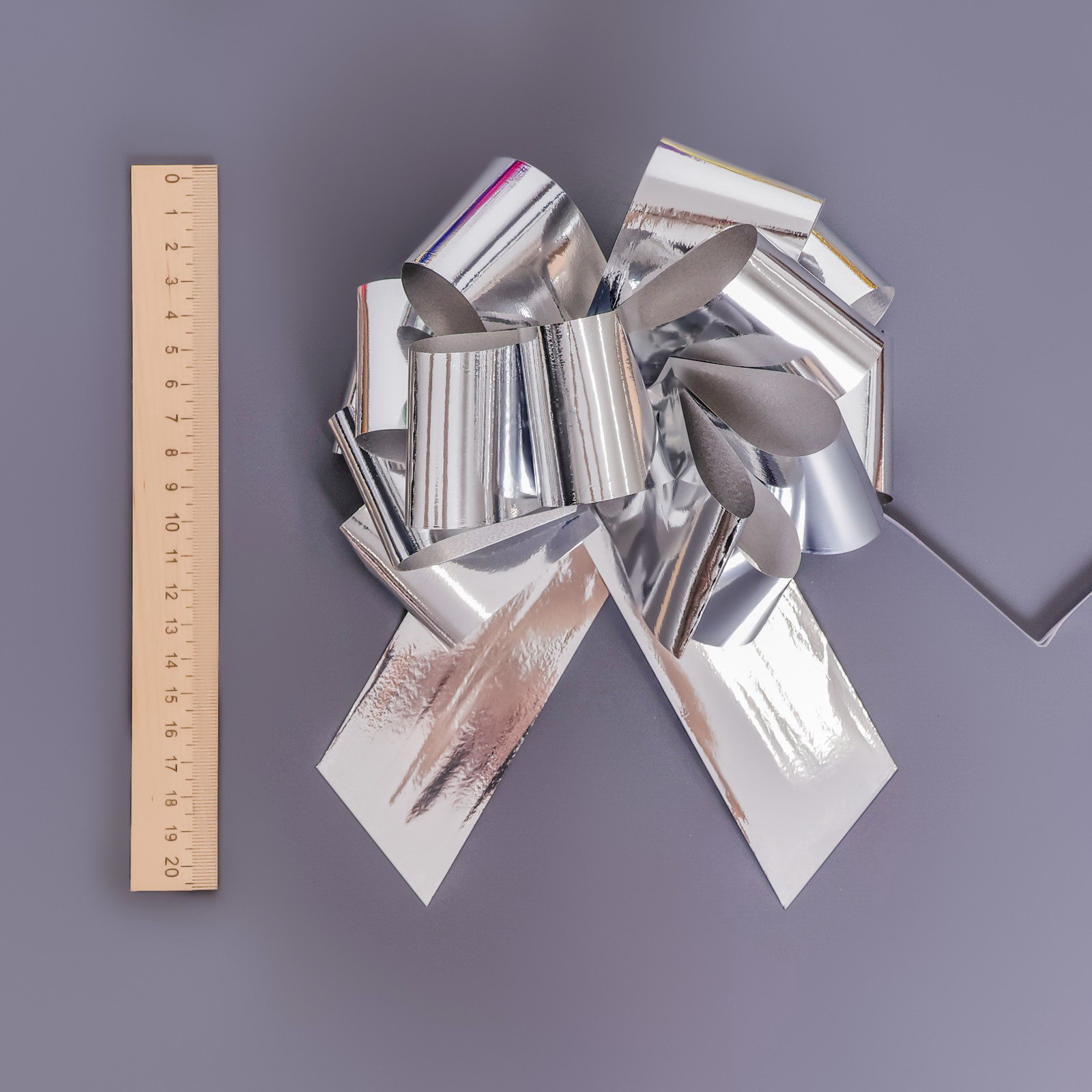 Подарочный бант - шар №5, серебро, для упаковки подарков, 5x0.1 см., UPAK LAND, Китай