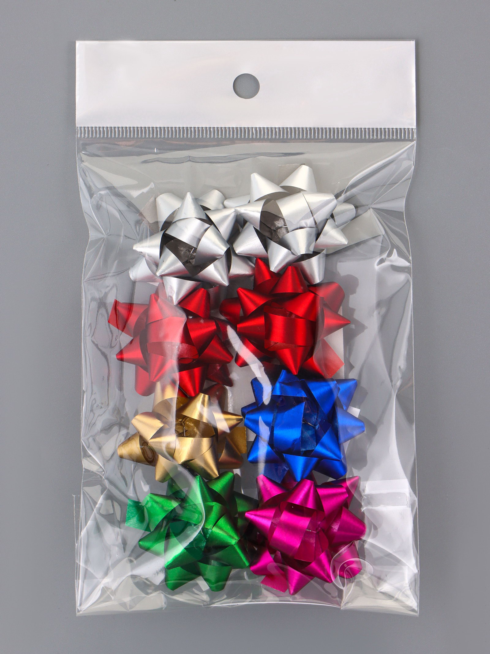 Подарочный Бант - звезда №3.5, простой металлик, для упаковки подарков, набор 8 шт., МИКС, 3.5х3.5х0.1 см., UPAK LAND, Китай