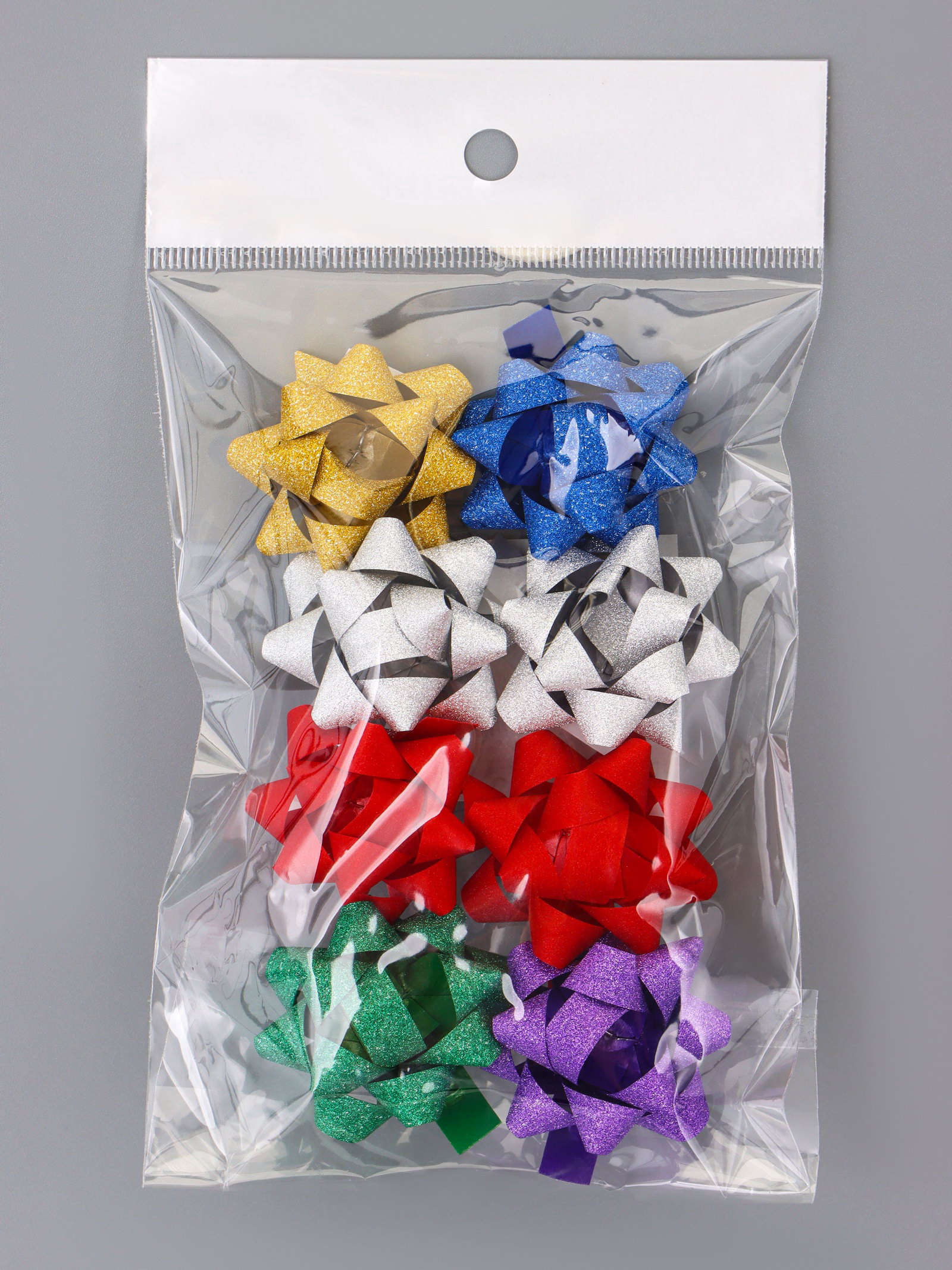 Подарочный Бант - звезда №3.5, с блестками, для упаковки подарков, набор 8 шт., МИКС, 3.5х3.5х0.1 см., UPAK LAND, Китай