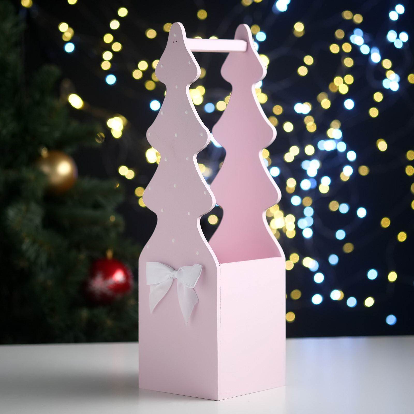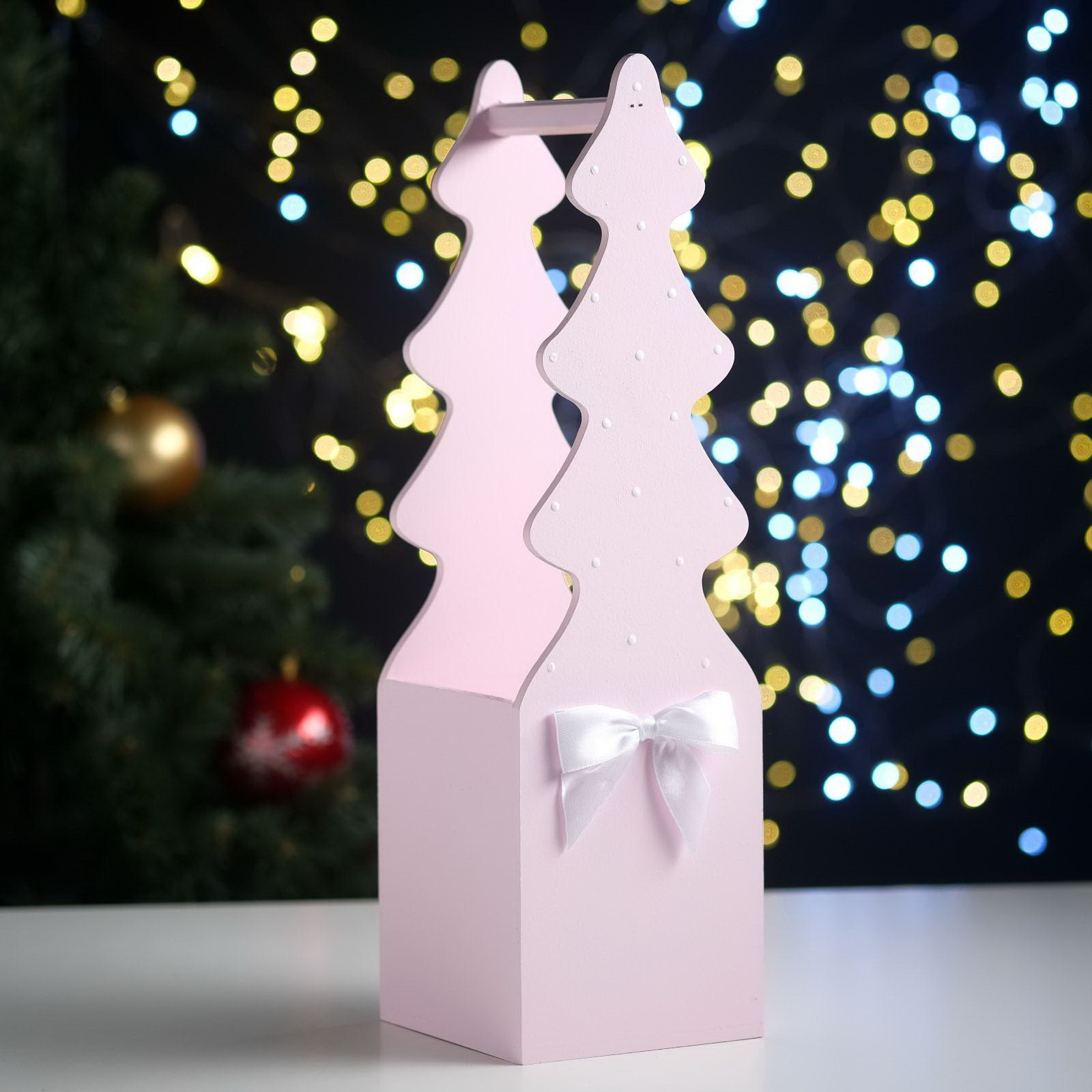 Ящик подарочный "Ёлка", упаковка, 12x12x42, МДФ 6 мм, розовый пастель, Дарим Красиво, Россия