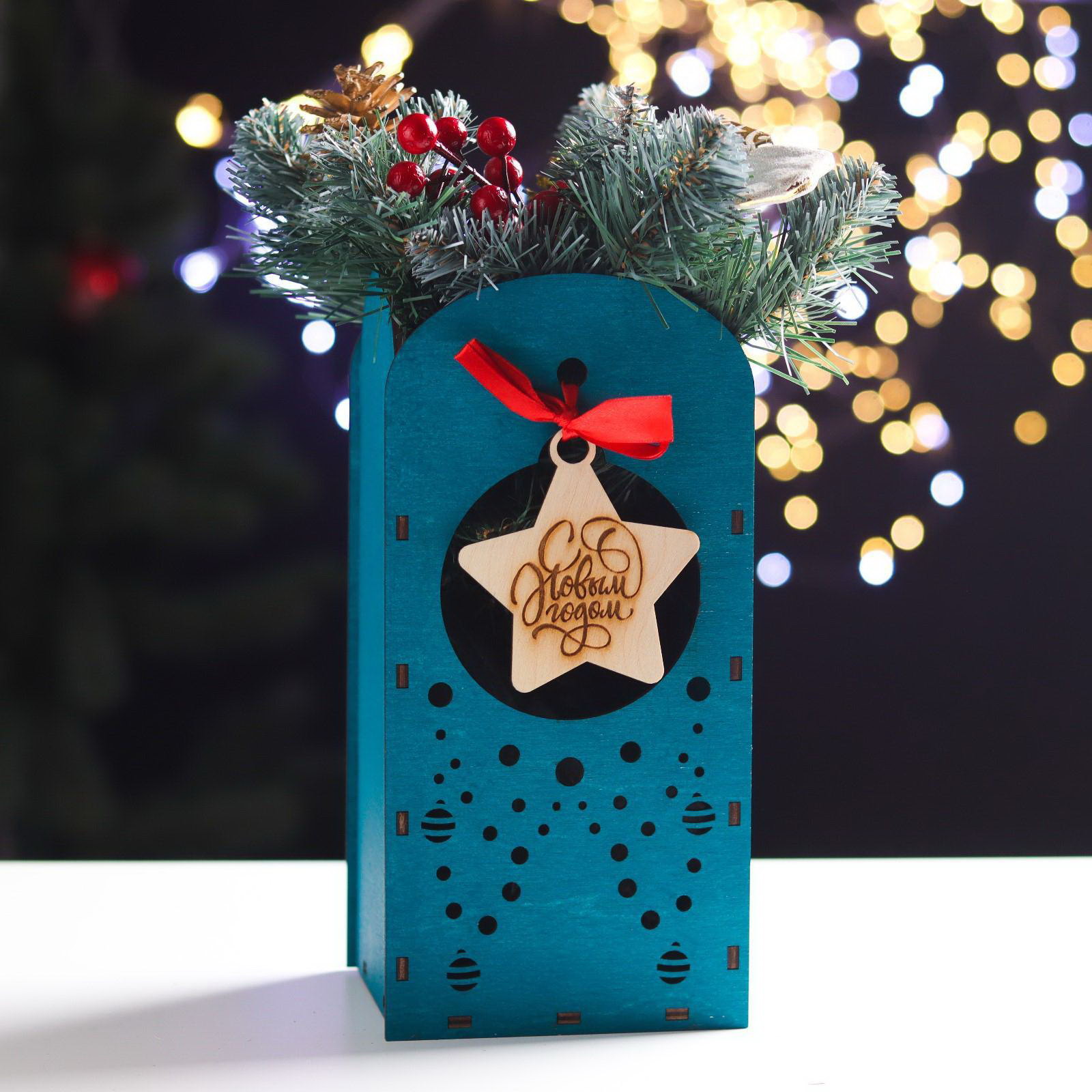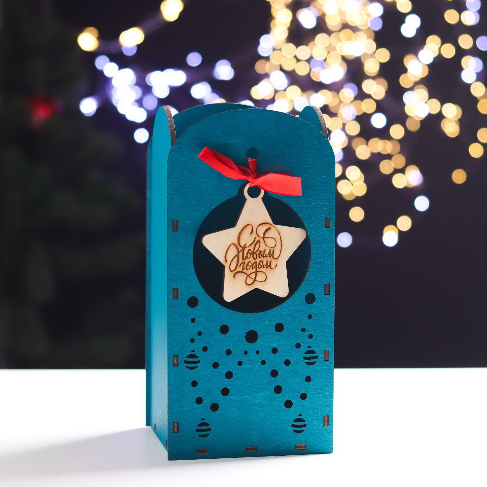 Подарочная коробка деревянная с ёлочной игрушкой "Звездочка", упаковка, зелёный кетцаль, 12.6x11.8x26 см, Дарим Красиво, Россия