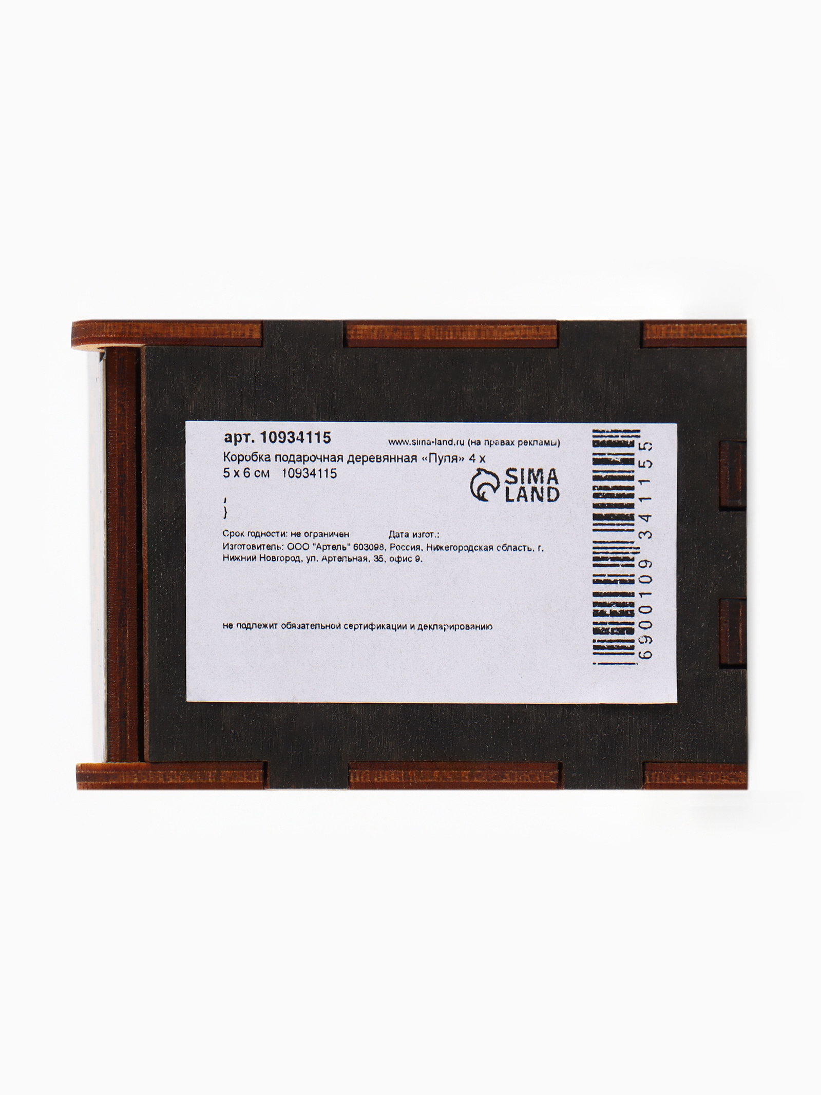 Коробка подарочная деревянная "Пуля" 4x5x6 см, Дарите Счастье, Россия