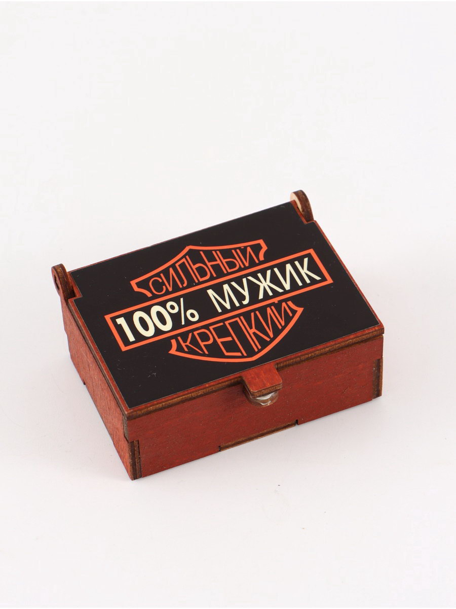 Коробка подарочная деревянная "100% мужик" 8.5 x 6 x 3.5 см, Дарите Счастье, Россия
