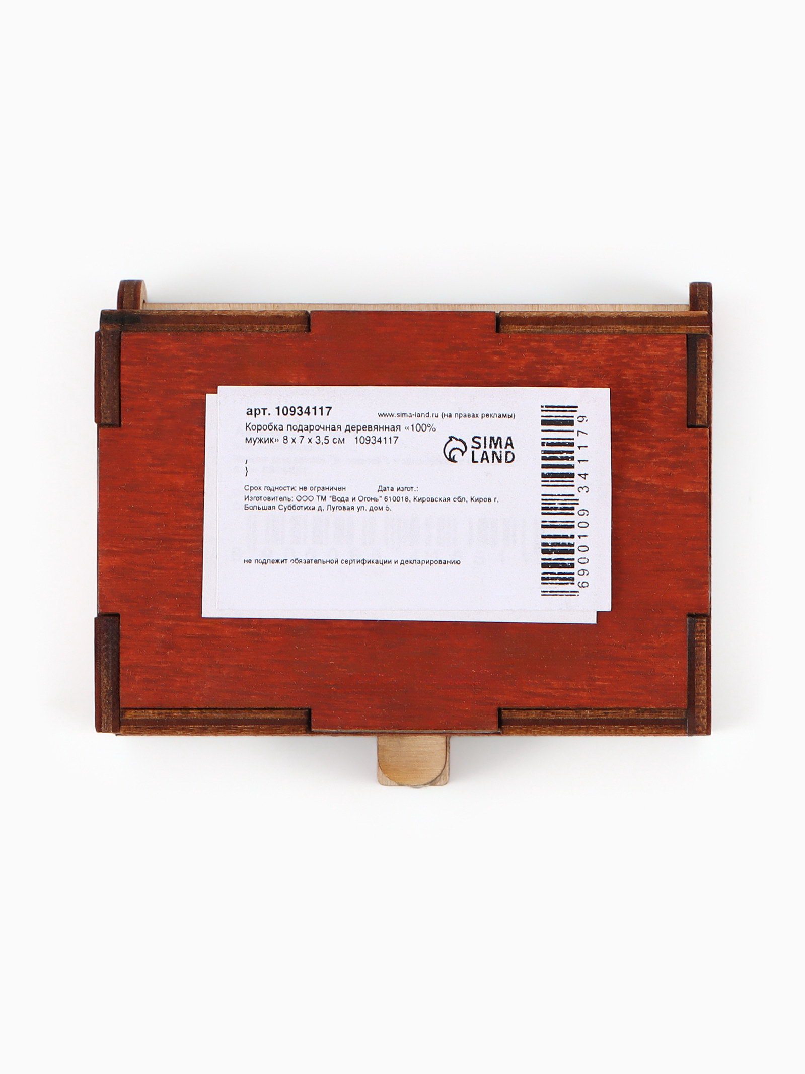 Коробка подарочная деревянная "100% мужик" 8.5x6x3.5 см, Дарите Счастье, Россия